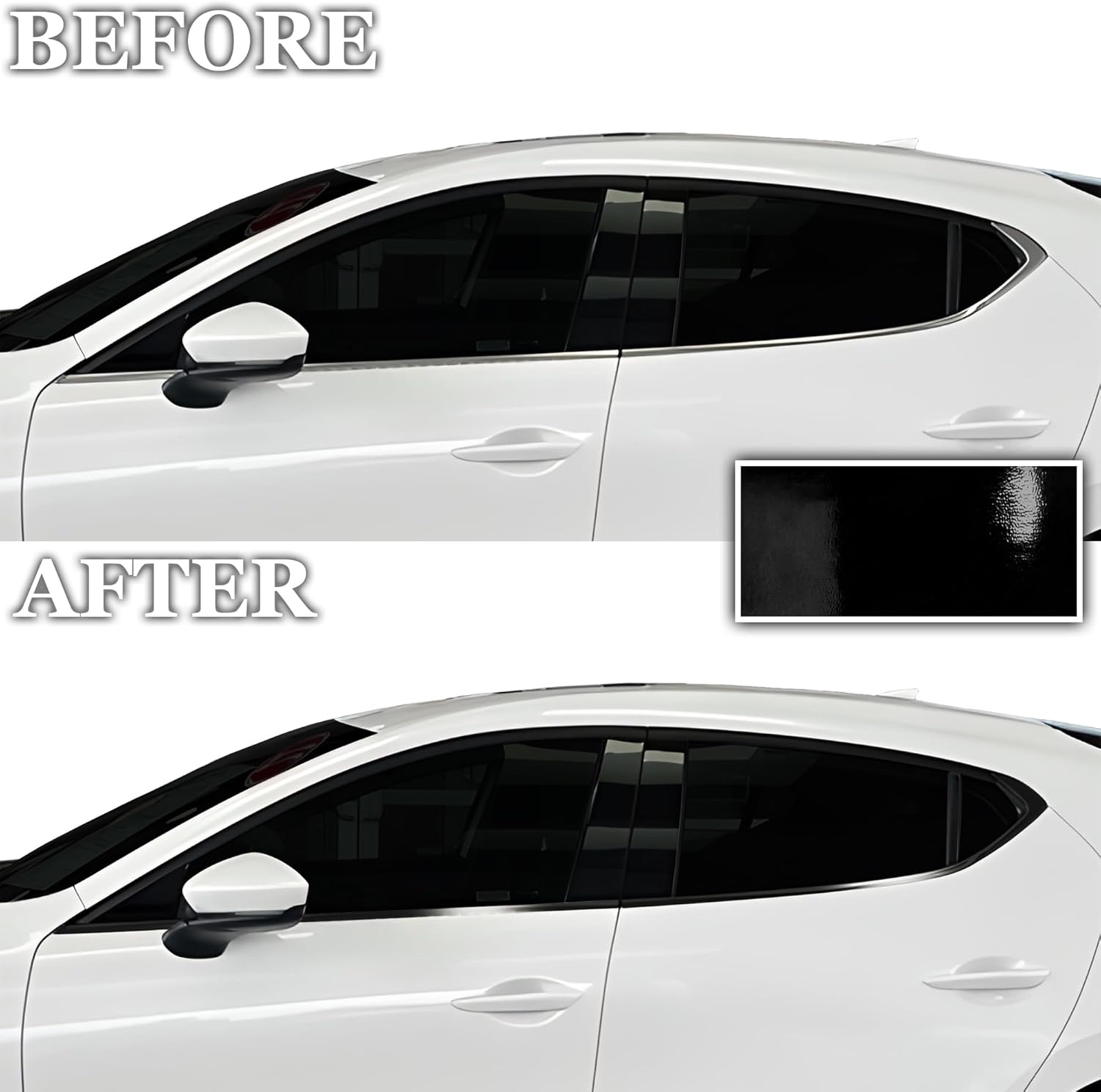 INCLUDES – Side Window Chrome Delete Overlays and Includes Squeegee and Knife for Installation