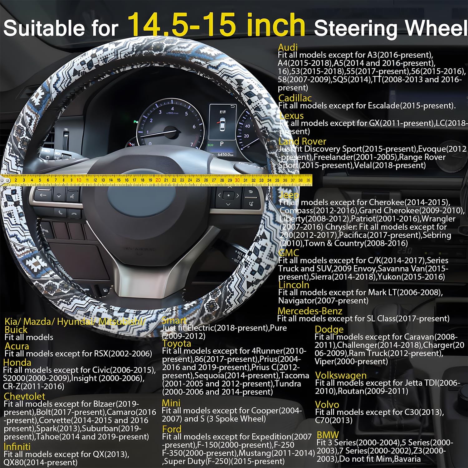 Fits 98% of Models – The women steering wheel covers is suitable for standard M-size steering wheels from 14 1/2 inches to 15 inches, please make sure your model is suitable before ordering. If you feel it’s difficult to put it on, please use a hair dryer to heat it for about 3 minutes to soften the inner rubber