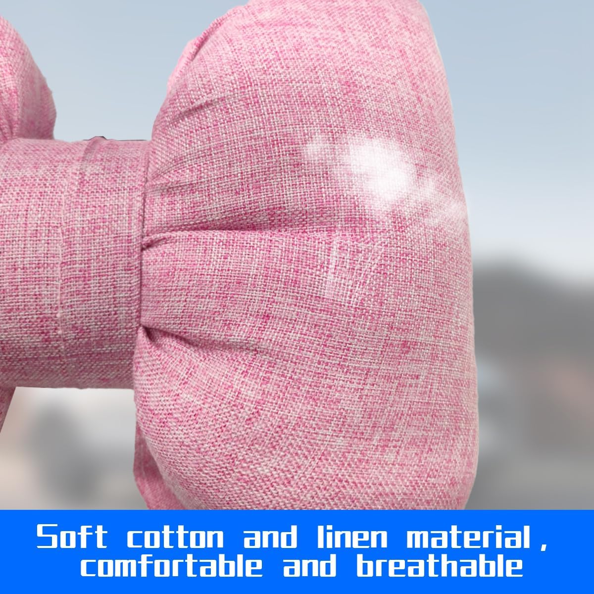 Bow Car Headrest Pillow, Breathable Memory Foam Vehicle Neck Pillow with Adjustable Strap, Ergonomic Auto Neck Support Cushion for Pain Pressure Relief, Universal for Most Cars (Pink)