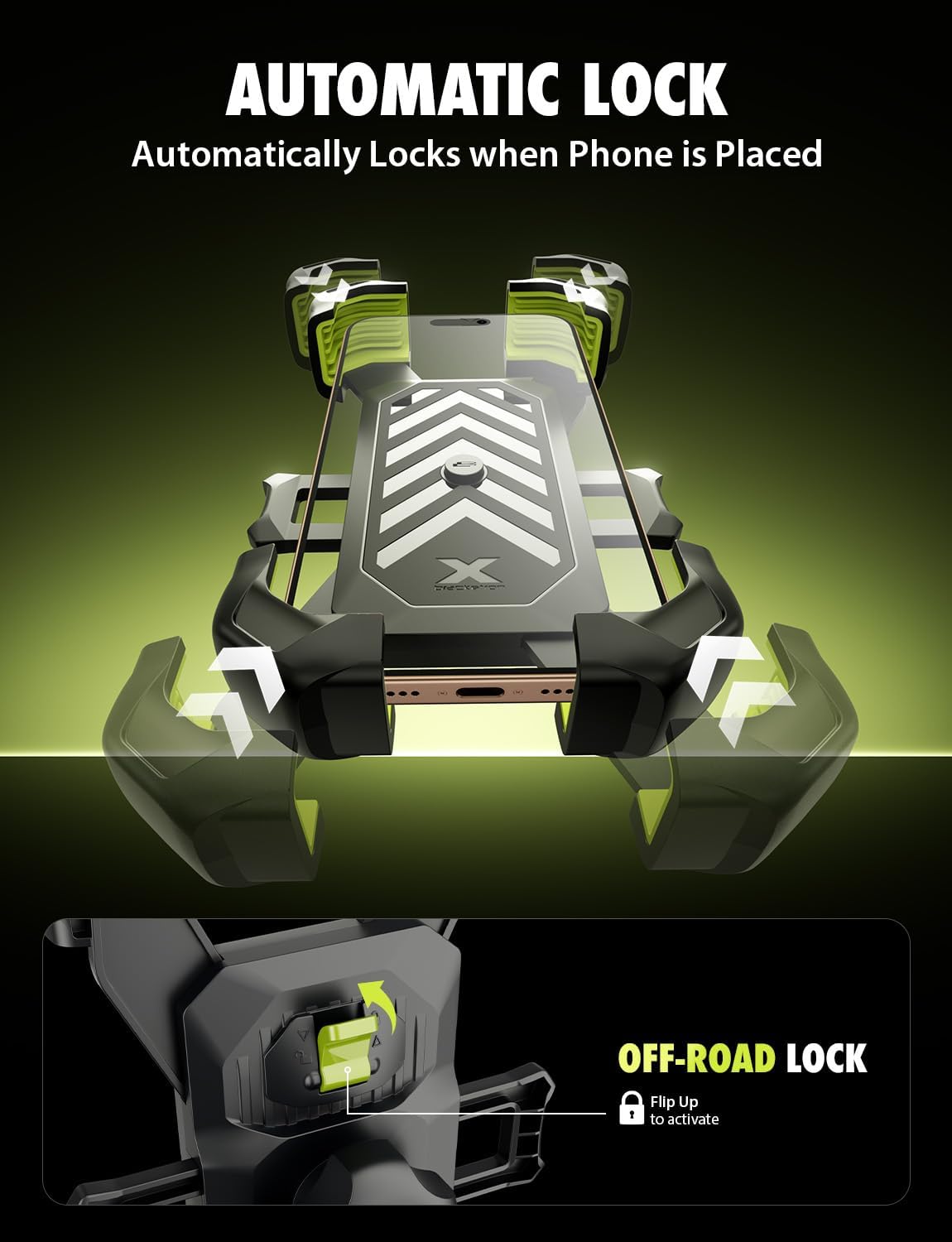 Extreme 4-Point Security – The car phone holder uses Bracketron’s XGrip 4-point shockproof grip system to hold your phone steady. Whether driving over potholes, gravel roads, or uneven terrain, your device stays locked in place without shaking or slipping.