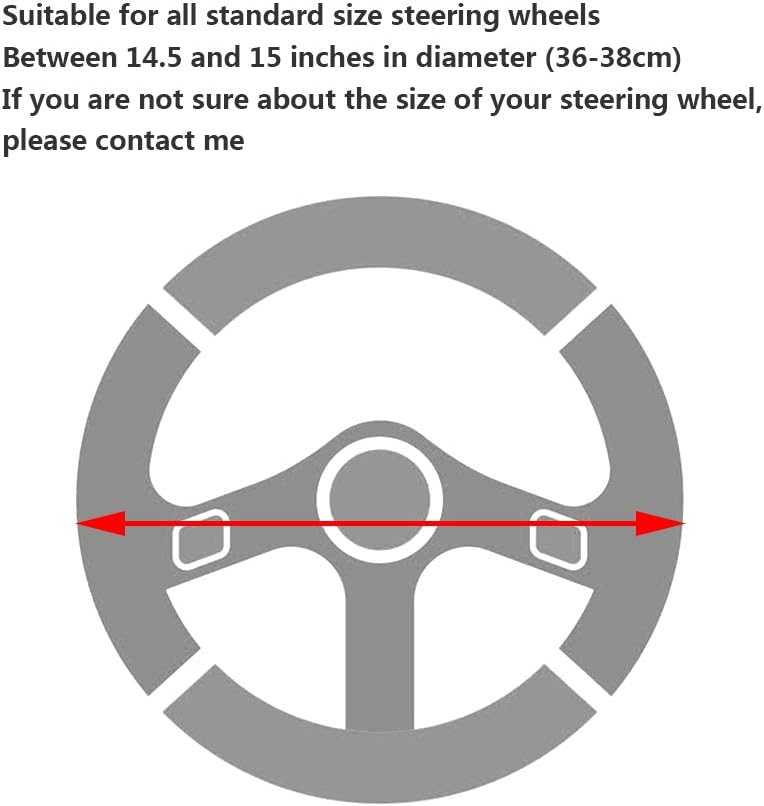 UNIVERSAL : This steering wheel cover is made of very flexible elastic stretch material, is well compatible with 98% of Standard Size steering wheel, suitable for most vehicle steering wheels with a diameter of 14.5 in to 15 in (37 cm to 39 cm), such as Suvs, Vans, sedans, Cars, Trucks, etc. are completely suitable