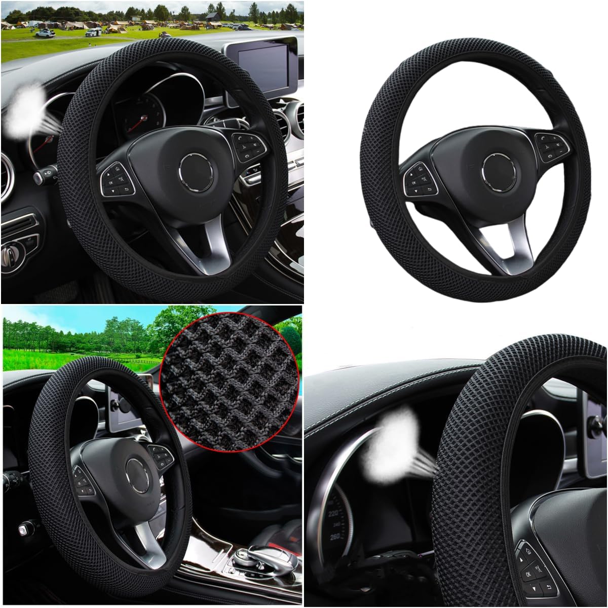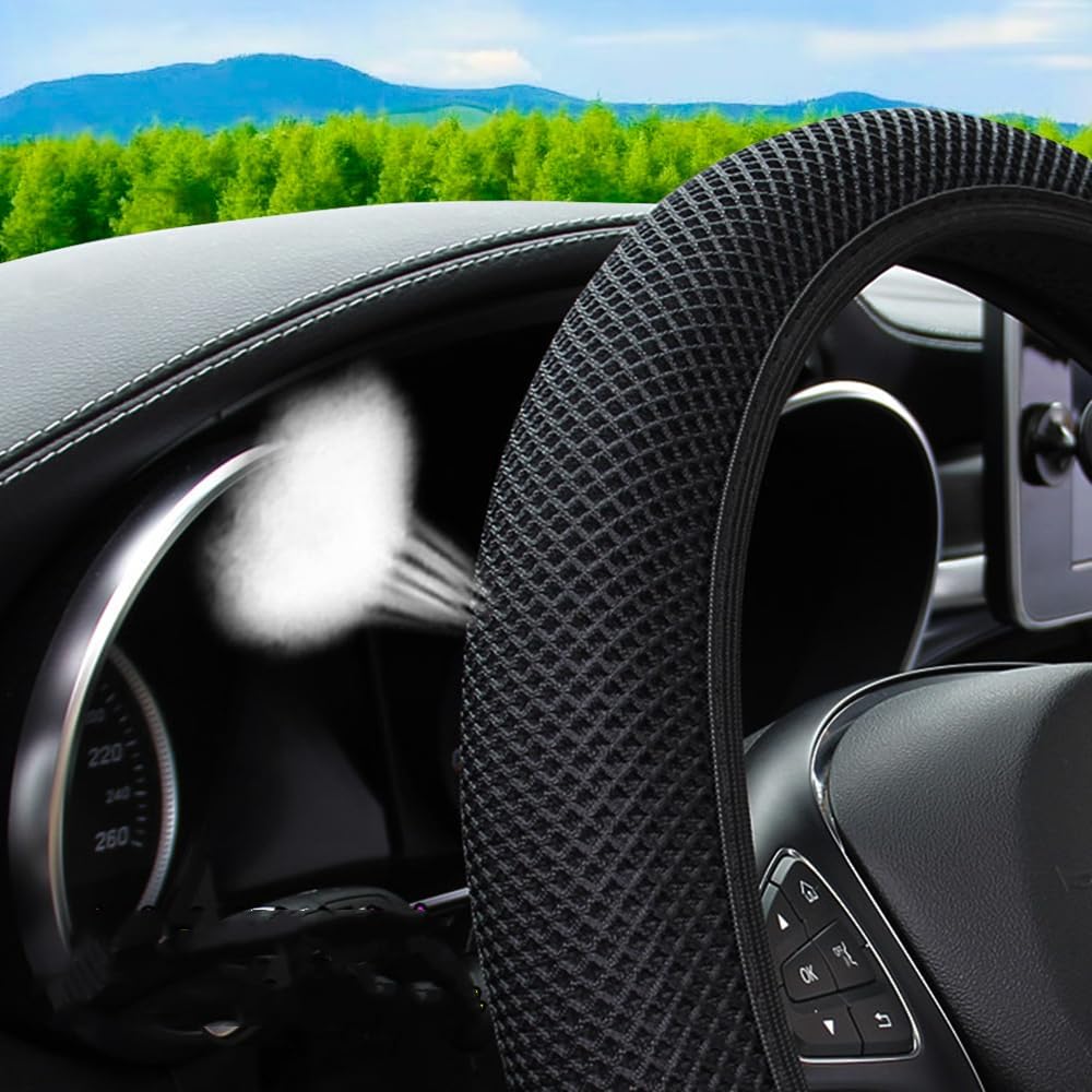TEXTURE : The steering wheel cover made of microfiber breathable ice silk technology is extremely elastic and stretchable, is doing a fantastic job of protecting you hands from a hot steering wheel. is it cool to the touch but it’s amazingly comfortable. Product texture makes safer, non slip, more comfortable grip on steering wheel.Cool texture, Cool to the touch even on. Not only protects your hands during the hot summers but it looks cute too. Doesn’t make hands sweaty in the heat