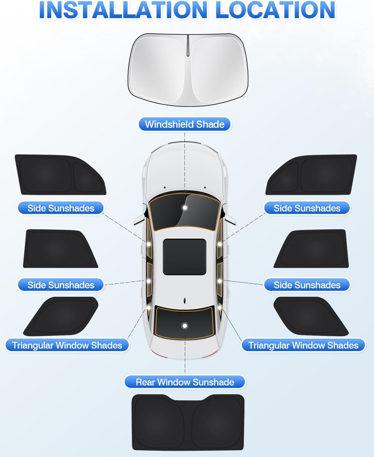 【All-Round Protection】Our window sun blocker set is perfect for blocking harmful UV rays from damaging your car interior. The window shades also do a good job of protecting babies and kids from sunshine, and reducing car interior temperature. Great accessories for your car!