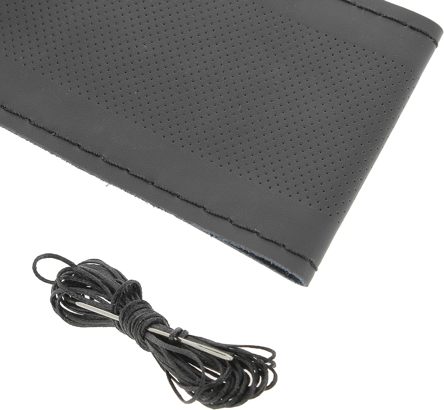 In de beschrijving staat er niet vermeld dikte van het stuurwielZodanig dat de naad niet overeenkomt omdat mijn stuur iets te dun is datdan de naden overlappenMaar was wel blij met het resultaat