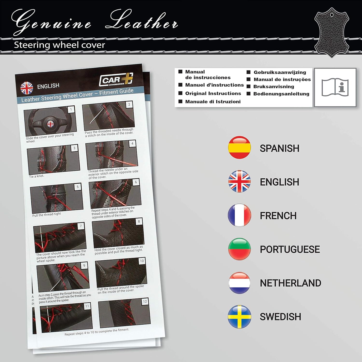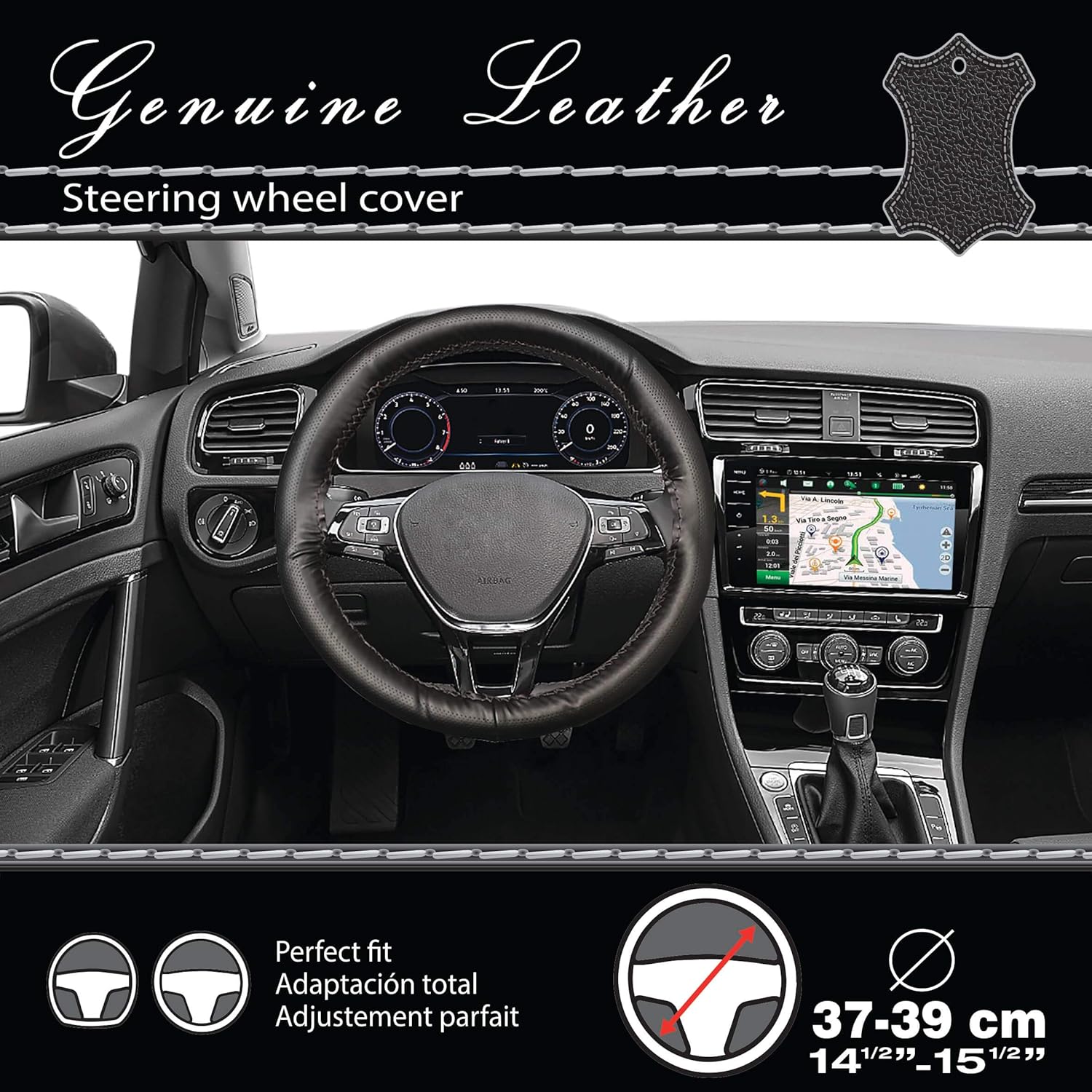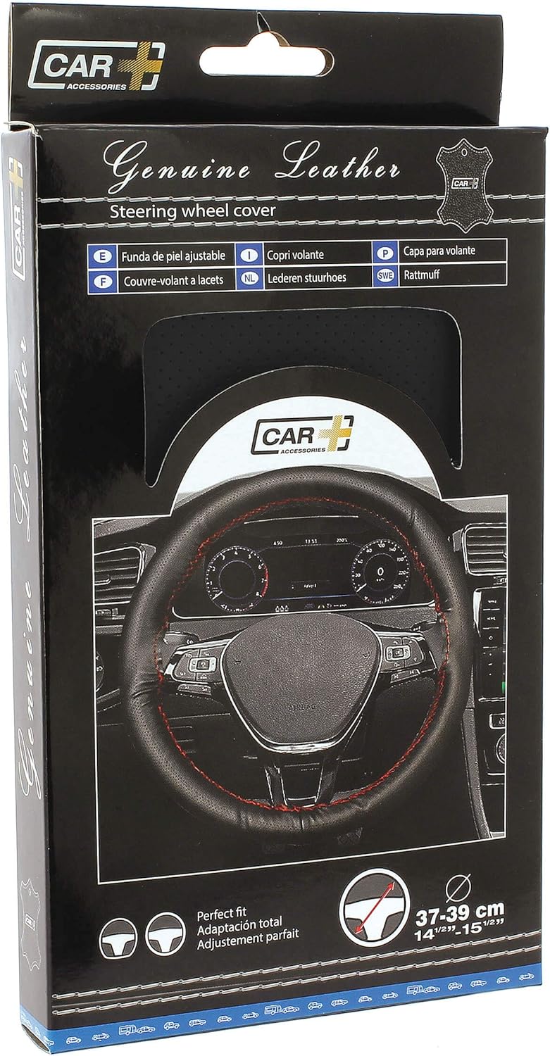 CAR+ “Classic Cuir” Car Steering Wheel Cover is make of non-slip breathable durable material, give you a better comfort and more control on the road. Softness and it does not harm your steering wheel. Protect your steering wheel all the time. You can use the cover all the surroundings and not limited by where you want to go. Come in black/black colour. Suitable for steering of: 36.8 to 39.5 cm.