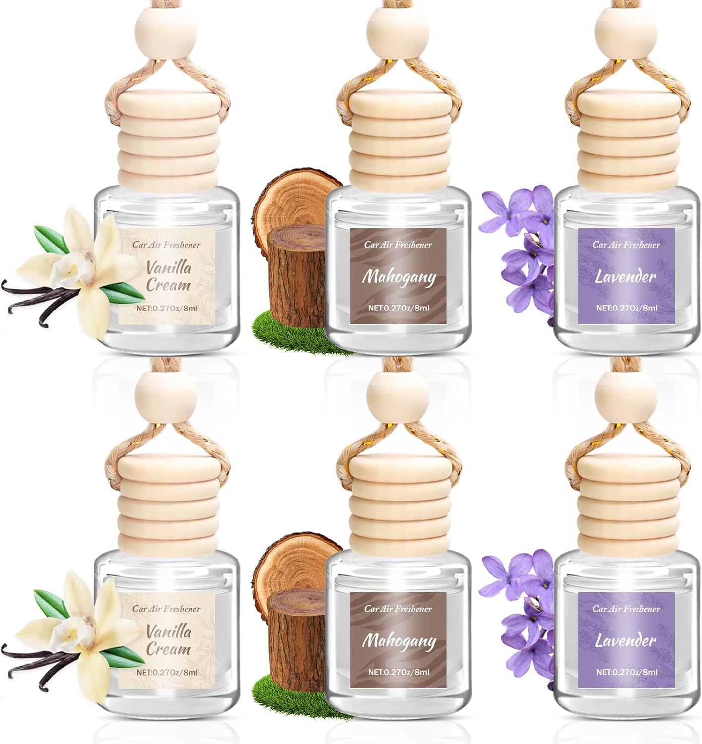 Car Air Freshener 6 Pack, Vanilla Cream,Mahogany & Lavender 3 Natural Scent, Long Lasting Essential Oil Fragrance Diffuser, Hanging Air Freshener Cute Car Accessories Interior for women