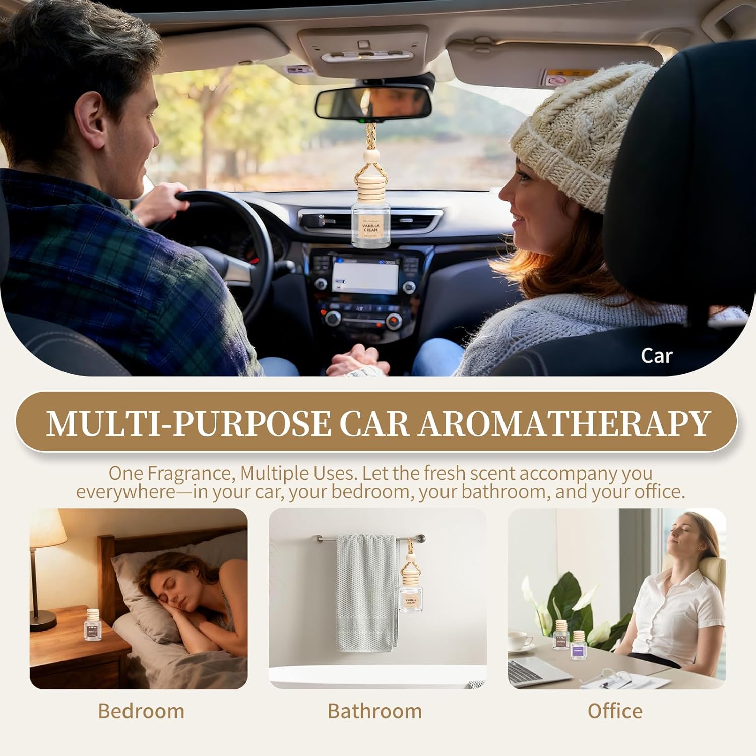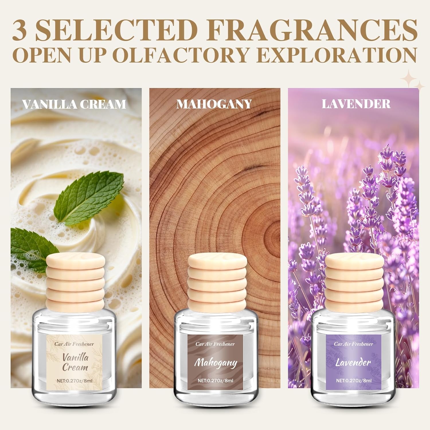 【3 Unique Fragrance】Vanilla Cream、Mahogany、Lavender. Choose according to your preferences and bid farewell to monotony. Each bottle of 8ml can effectively eliminates unpleasant odors in the car, It is a natural deodorizer
