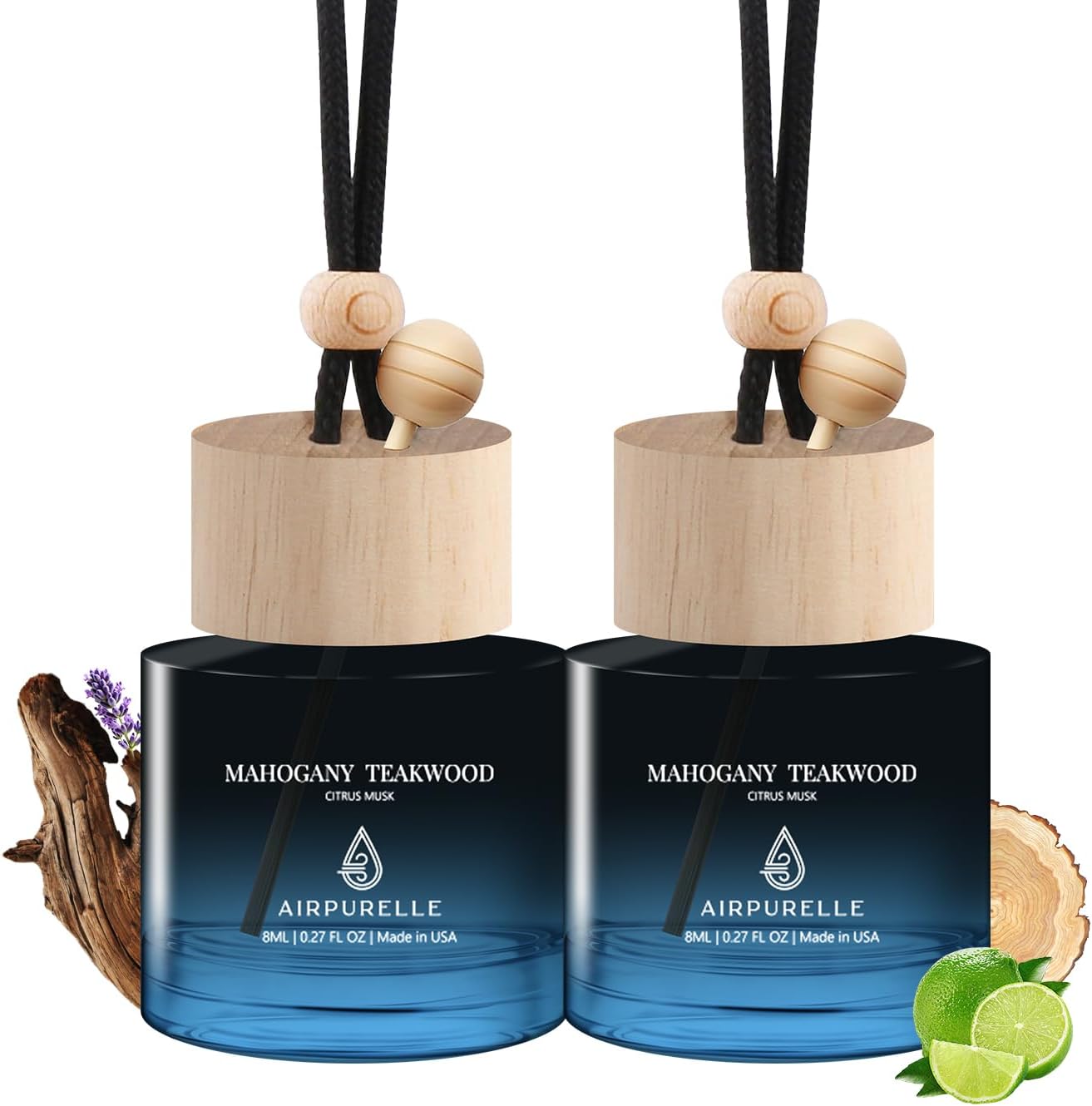 Car Air Freshener Hanging 2 Pack Car Air Fresheners Diffuser – Mahogany Teakwood Fragrance Oil Air Diffuser for Car, 45+ days Long Lasting Car Fresheners Fragrance, Two 0.27 FL OZ/8ML Made in USA
