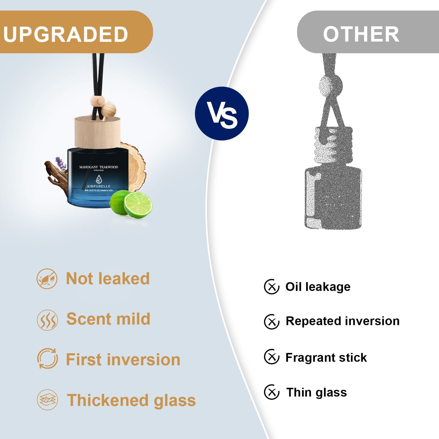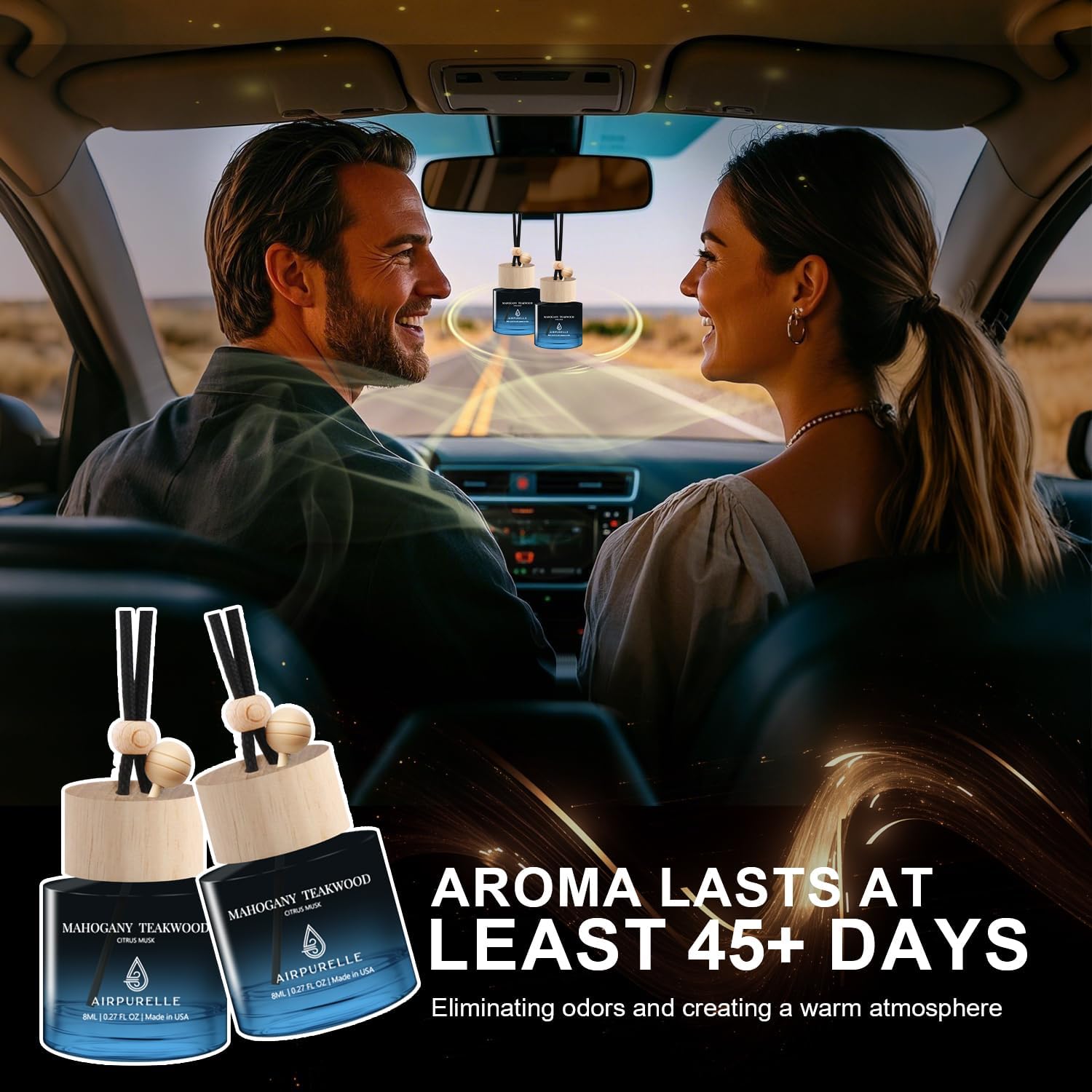 【Premium Made in USA Quality】 Proudly manufactured in the USA from sustainably sourced wood and thick, high-quality glass. From production to processing, every step is strictly controlled to ensure durability. These air fresheners for car are crafted from premium essential oils, creating a safe and pleasant environment for all family members.