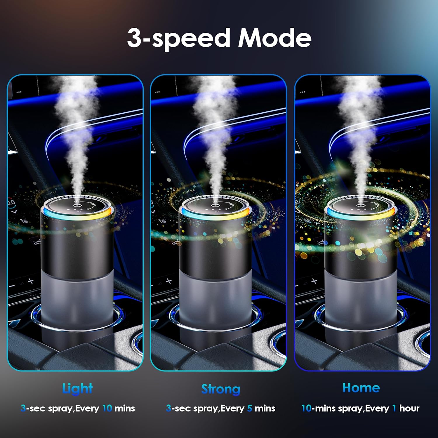 🌬️ 3-Step Scent Control: Delivers zero-noise operation with adjustable intensity: Light Mode – Subtle freshness for small spaces Medium Mode – Balanced coverage for sedans Strong Mode – Instant odor elimination for trucks/SUVs