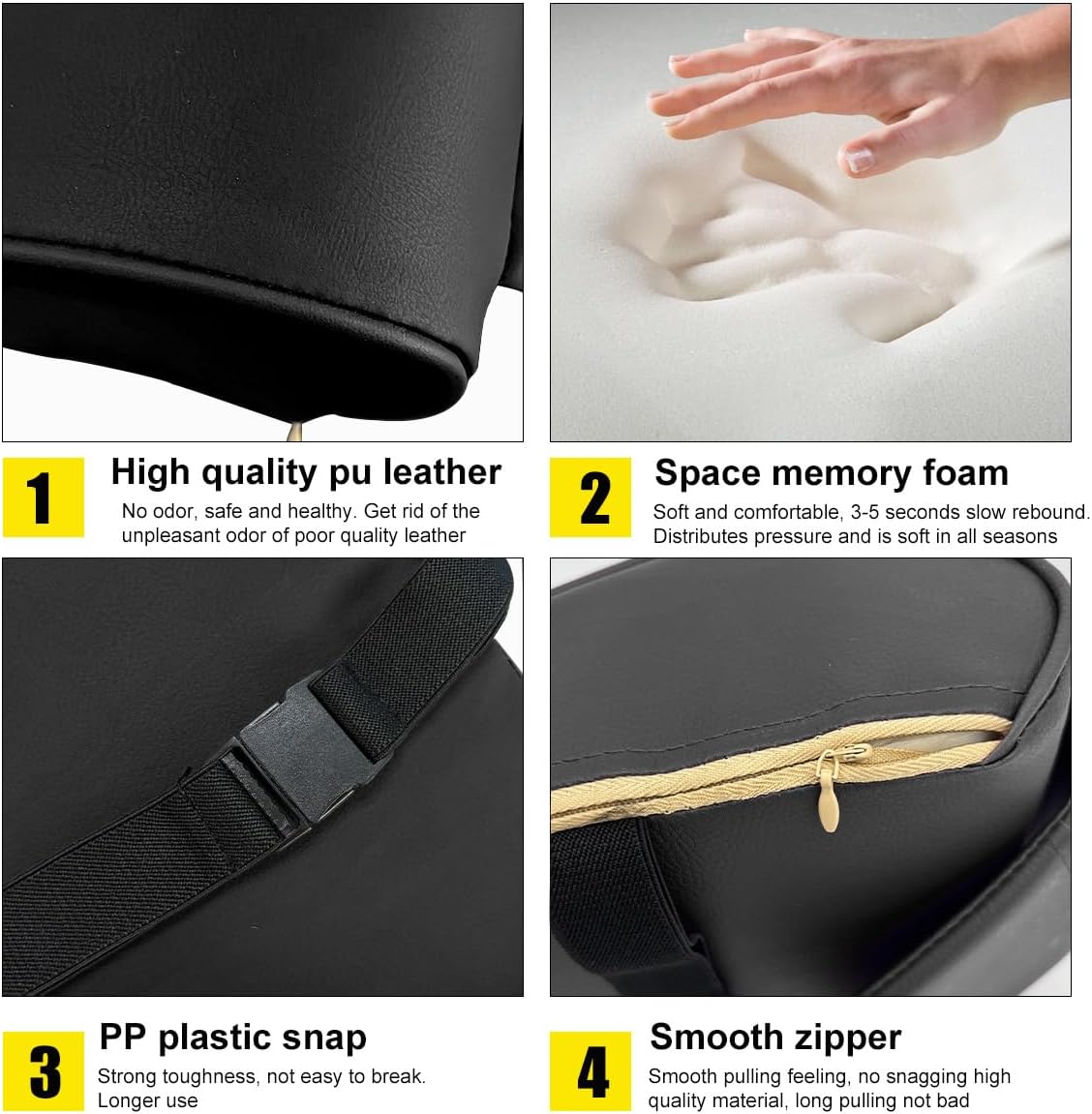 【Premium Materials】: It is crafted from premium leather and memory foam material which are breathable, skin-friendly and non-irritating. Such durable materials of the cushion ensures it can withstand extended use without losing its shape or supportive properties.
