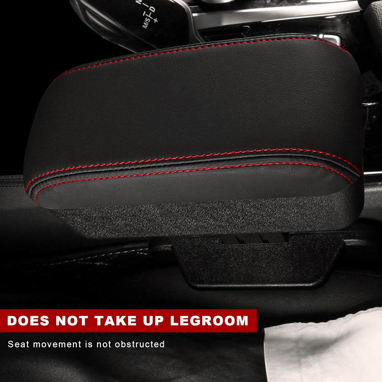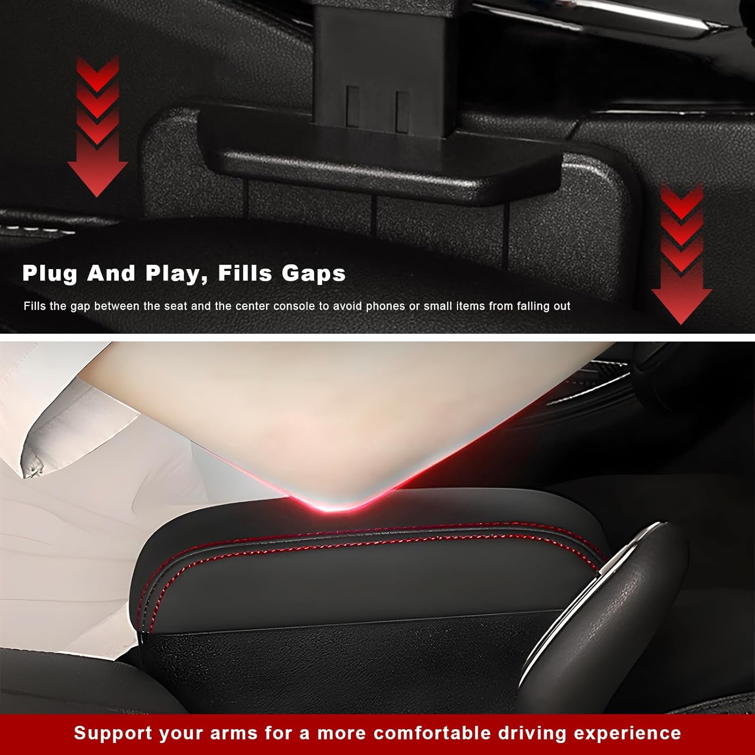 Car Armrest Storage Box with Cup Holder, Adjustable Leather Auto Seat Gap Filler Armrest Extender Pad, Liftable Forearm Wrist Support Center Console Storage Case for SUV Truck (Black & Red)