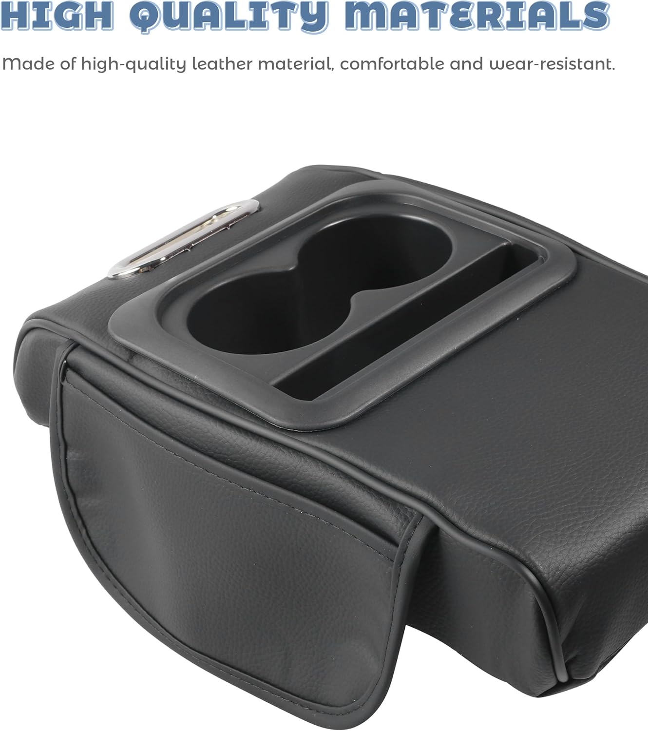 Car Armrest Storage Box,Car Accessories Console Organizers and Storage,Universal Waterproof Leather Console Cover with Cup Holder and Phone Holder,Suitable for Most Cars (Normal, Black)