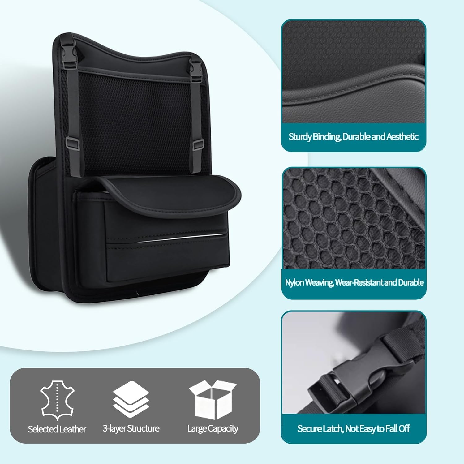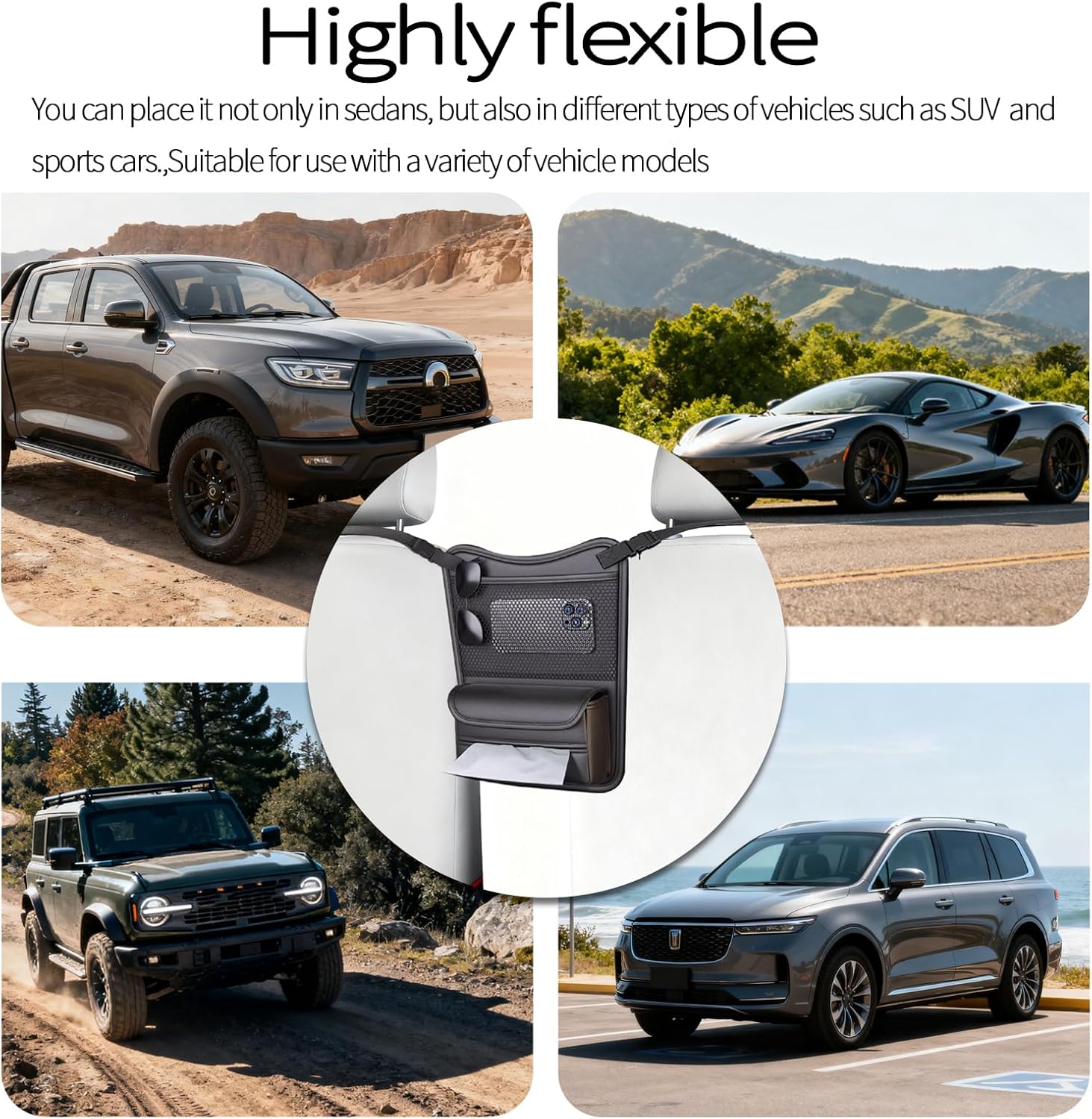 【Clear & Convenient】: The storage bag has a layer of mesh pocket that allow you to clearly see the items placed inside. The open tissue storage box allows you to easily take out tissues. The adhesive design also makes paper towel replacement easier. The most important is that it’s right between the two seats, so everything inside is within easy reach.