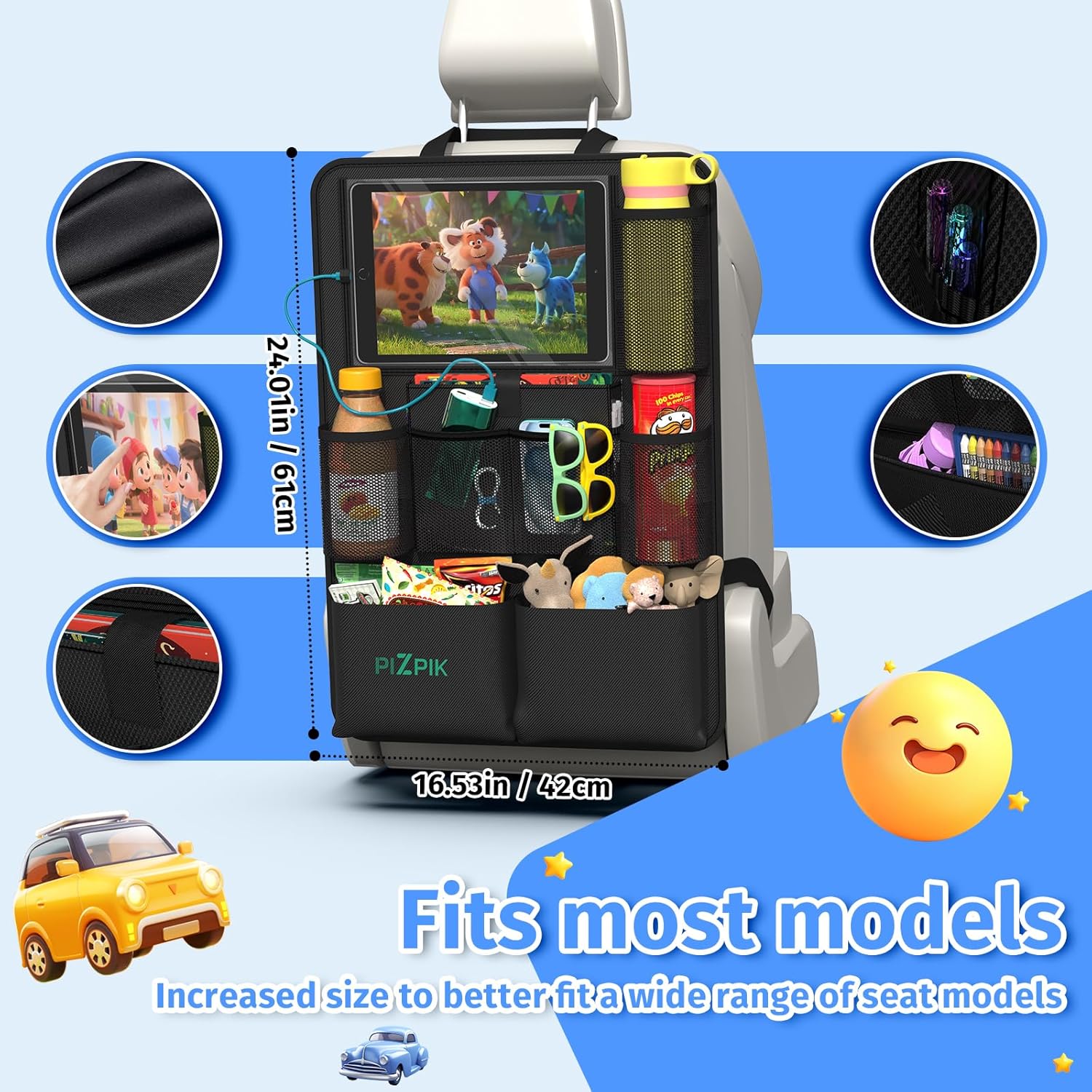 I am absolutely blown away by how much easier car rides have become since getting this 2-pack of back seat organizers. With two kids constantly snacking, fidgeting, and asking for their tablets, this product has brought order to our mobile chaos—and I’m never going back!🚗 Built for Busy FamiliesEach organizer features a built-in clear tablet holder that perfectly fits our iPads, and the kids can watch their shows hands-free. It’s ideal for road trips, errands, or just keeping peace during school pickups. No more dropped devices or awkward setups!🧃🧸 Storage Galore!I was amazed by the amount of space and how smartly it’s designed. You’ve got:Mesh cup holders for drinks and bottlesDeep pockets for toys, snacks, and wipesCompartments for pens, tissues, sunglasses—you name itEverything has a place, and now the back seat doesn’t look like a tornado hit it!🛠️ Strong, Sturdy & Easy to InstallInstallation took less than 5 minutes. The straps are adjustable and stay snug on the seat without slipping. The material is thick, durable, and waterproof—easily wipes clean with a damp cloth. Even after weeks of abuse from snack crumbs and juice spills, they still look brand new.🎒 Kid-Approved, Parent-LovedMy kids LOVE having their own organized spaces. No more yelling for toys or drinks—we just load it up before the drive, and they’re set. And honestly, it’s made me feel way more in control as a parent on the go.🧼 Bonus: I love that it keeps clutter off the floor. It actually makes vacuuming the car easier!Bottom line: If you’re tired of mess, stress, and constantly reaching into the back seat while driving, this is 100% worth every penny. I’d give it 6 stars if I could. 🙌