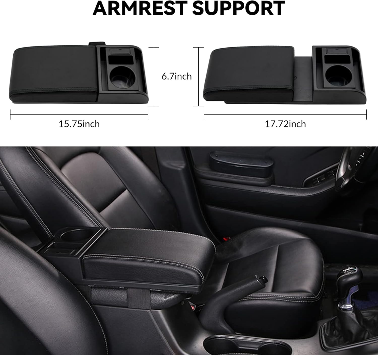 【Widely Application】New Design Perfect Fit With USB Interface,will not affect the use of the handbrake.The top cover can be slided forward,give better support to the arm.You can easily put belongings in it and keep your car tidy.2.6 inch high center console pad is exactly designed for most kinds of most vehicle,SUV,Truck,Car. Our car armrest seat box cover must fit your vehicle like a glove as long as the center console of your vehicle is within 18 inch long and 6.6 inch wide.