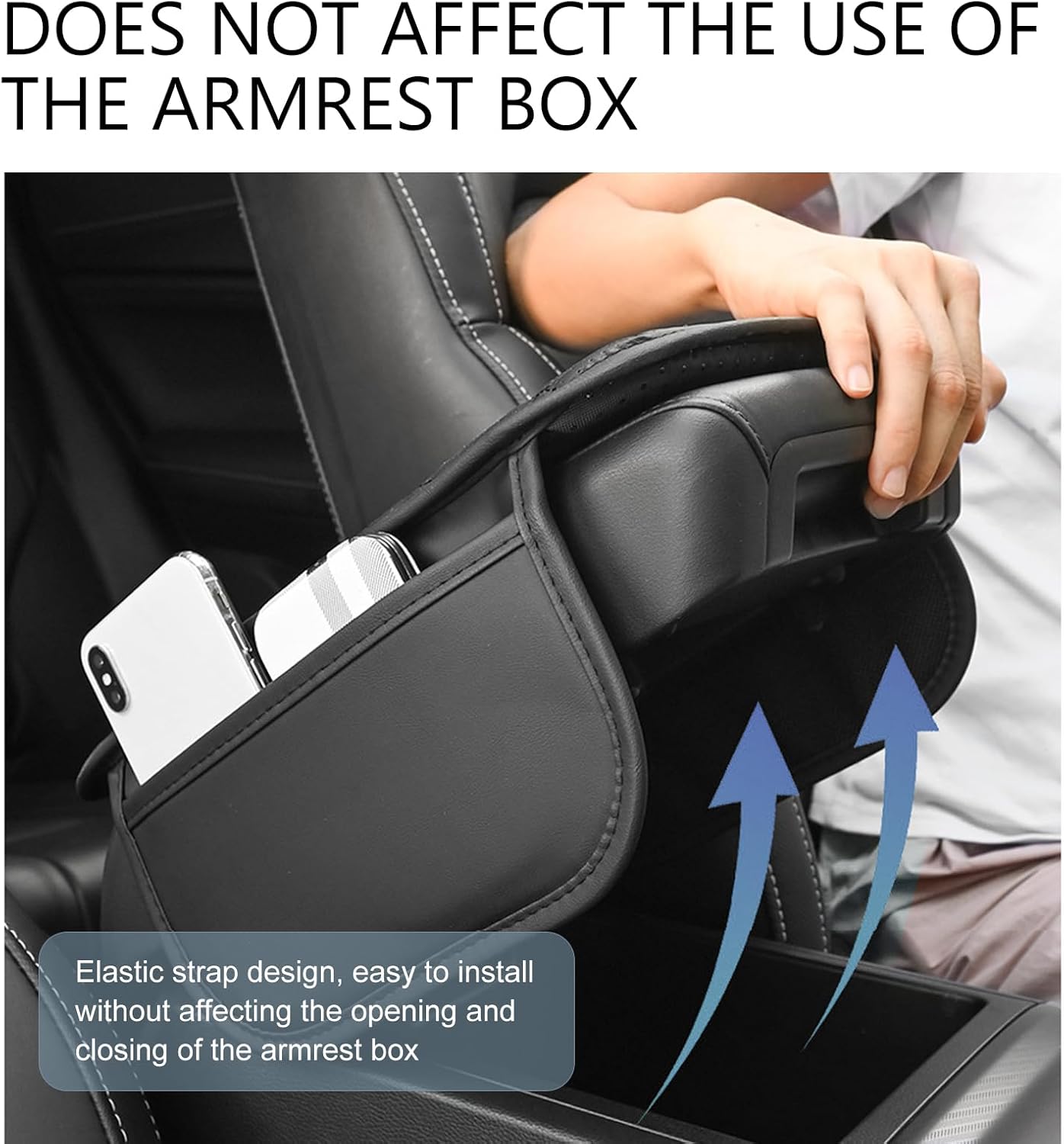 Convenient to Use: This car center console is equipped with adjustable elastic band on the back, easy to install, just open the center console cover, put the elastic band on the back directly into the center console and cover it to finish. It fits securely and is not easy to shake, which ensures driving safety and adds comfort to your driving experience.