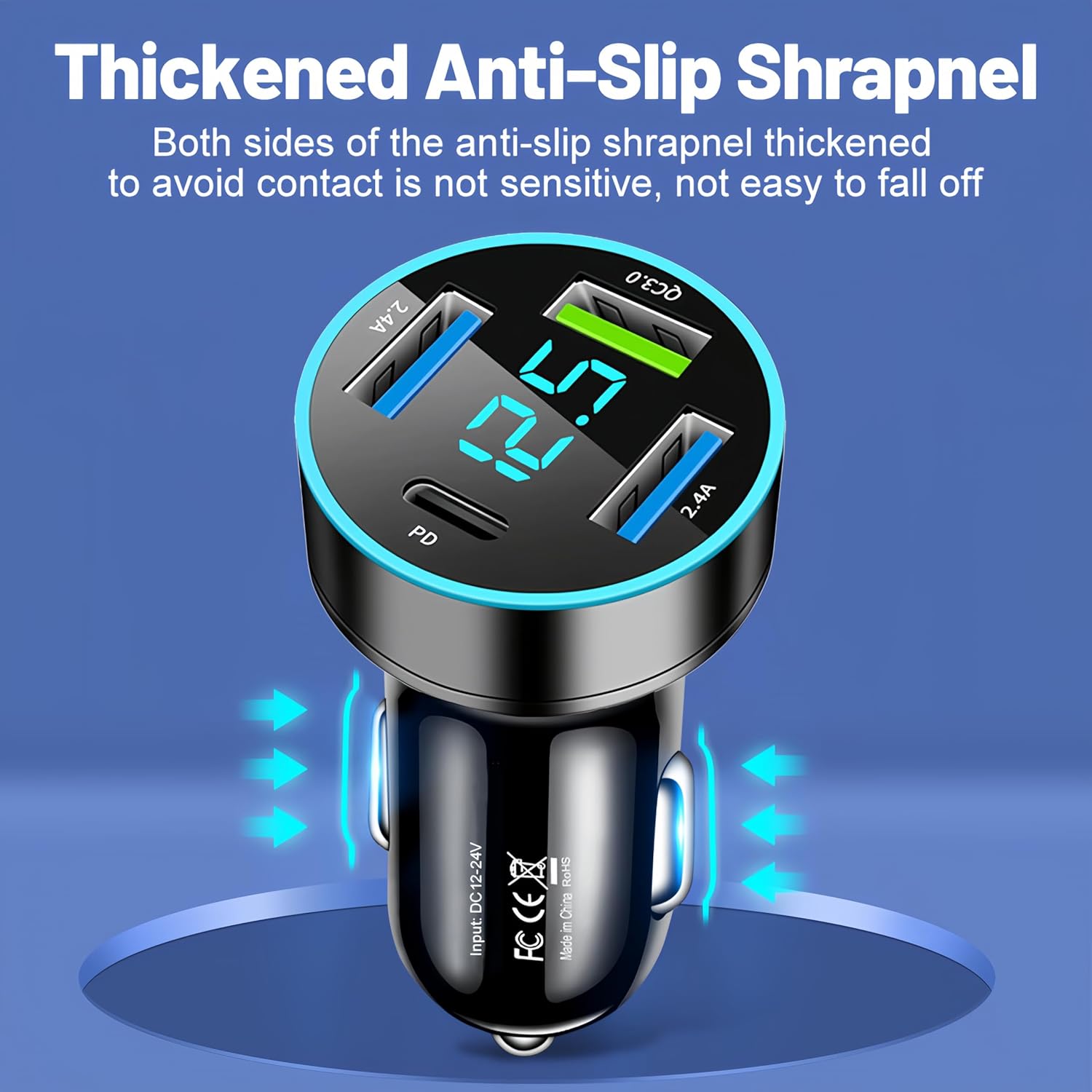 LED Voltage Display : USB C car charger fast charging with LED digital voltmeter, which can monitor and display the voltage of the vehicle battery in real time,so as to master the health of the vehicle’s electrical system.