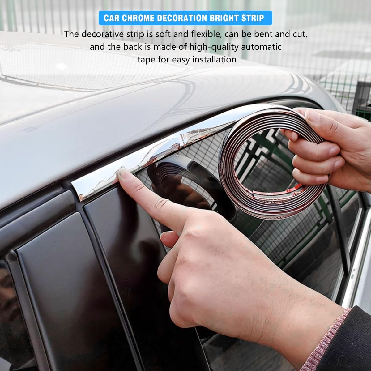 【Flexible and Cut】: Our products are soft and flexible and can be bent and cut. During installation, you will find that these chrome trim strips can be easily bent to fit the curves and contours of the car body, whether it is a smooth line or a complex corner, it will fit perfectly without leaving gaps. This high degree of adaptability ensures that the trim strips fit snugly into the bodywork, which not only enhances the aesthetics, but also enhances the solidity of the installation.