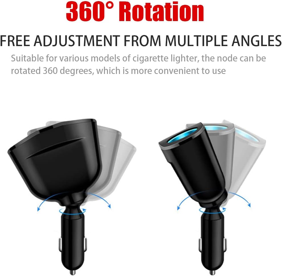 【360 Degree Swiveling Head】: This car charger is suitable for all kinds of model cigarette lighters, can be adjusted 360 degrees, and has an ultra-convenient design to provide greater efficiency and convenience for your car. It can reduce equipment wear and extend its service life. This splitter is not bulky and it’s a nice sleek design.