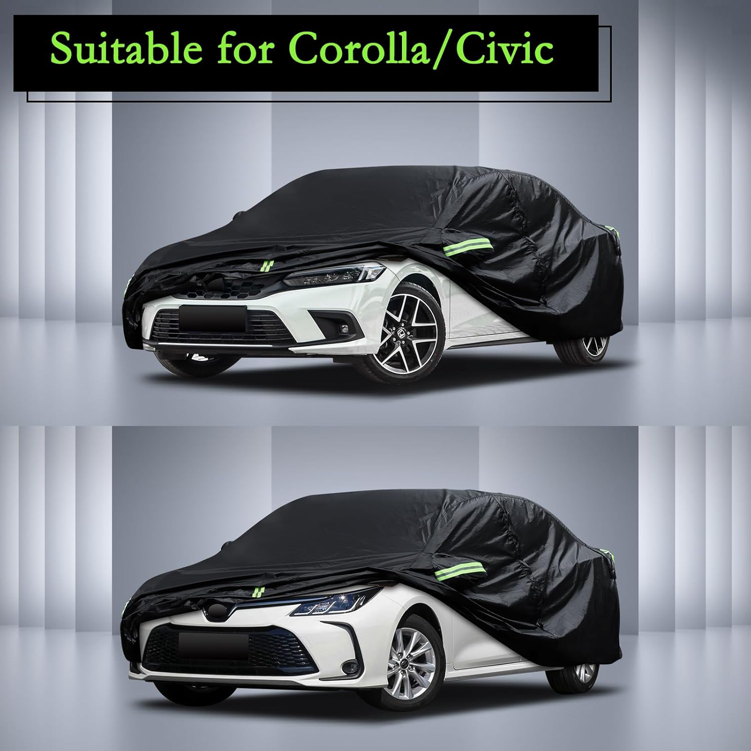 All-Weather Protection – This car cover is custom design for Toyota Corolla (2000-2025), Honda Civic sedan/coupe (1991-2025) ,not fit for hatchback. It provides comprehensive protection for the car from all-weather factors in the four seasons of spring, summer, autumn, and winter, such as dust, snow, industrial pollution, bird droppings, leaves, pollen, acid rain, ultraviolet light, intense sunlight, heavy rain, etc.