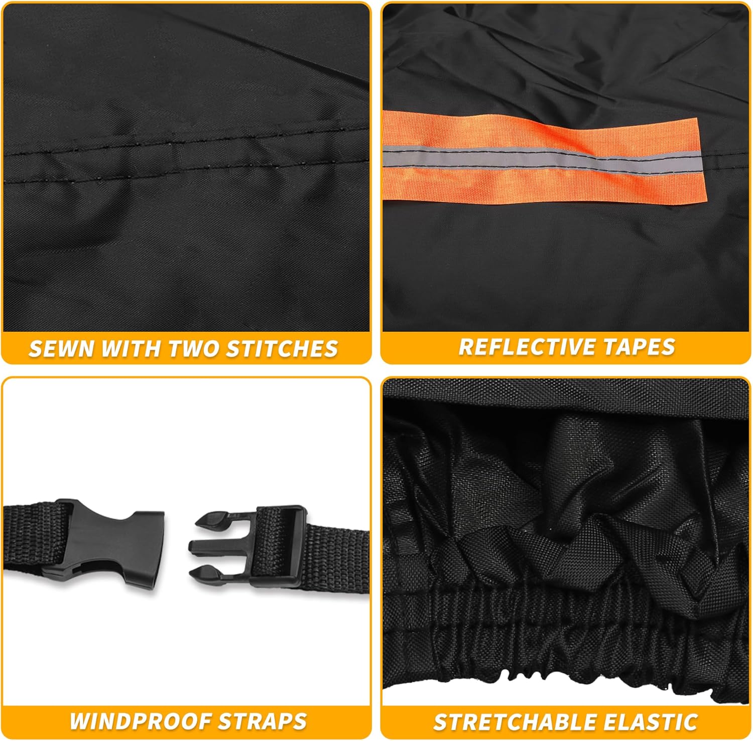 [PRODUCT BENEFITS] (1) The driver’s door has a zipper for convenient access. (2) Windproof straps that are specially designed are placed at the bottom and can go through the middle of the car so that the cover won’t be blown away. (3) Mirror pockets enable the cover to fit more snugly. (4) The adjustable elastic hem makes it easy to adjust the size