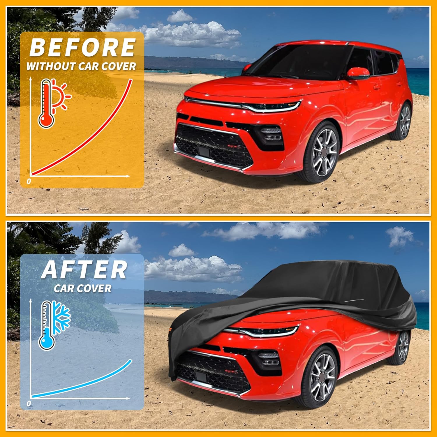 [ALL WEATHER PROTECTION] This car cover characteristic gives the car cover enhanced water resistance. The multi-layer coating is superb in providing sun protection and anti-UV effects. On hot days, it keeps the car cool. It is suitable for use in all seasons. The reinforced seams ensure that the car cover can withstand various environmental challenges. Whether it’s rainy days or sunny days, this car cover offers optimal protection and keeps your car in good condition