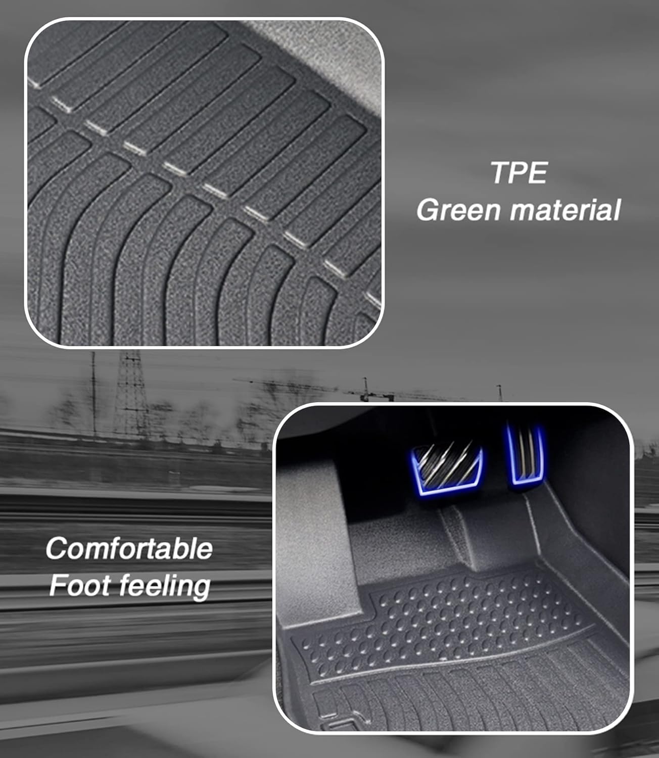 【Safe & Durable】Our floor mats are made of tasteless and safe TPE materials. TPE material has the characteristics of high strength, high elasticity, strong plasticity, and high temperature resistance, so there no foul smell will be produced even in high temperature. Bring you and your families a safer and more comfortable interior car environment.