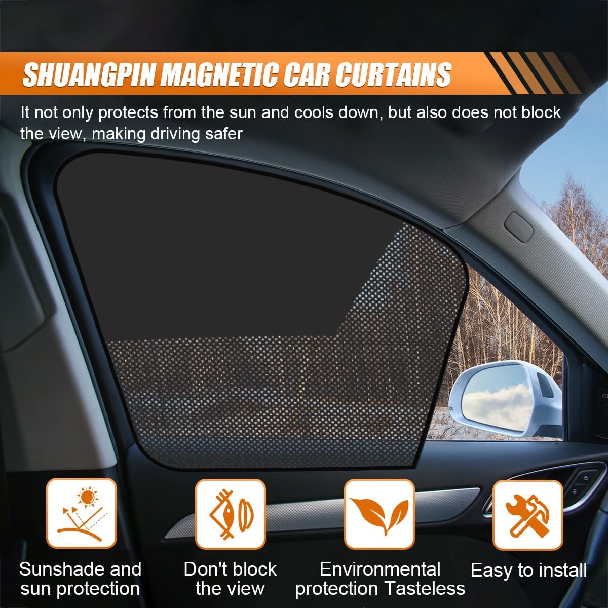 【Material】:This car window shade is made from high-quality mesh fabric and opaque sunshade fabric, combining durability, tear resistance, and soft elasticity. It remains resistant to deformation and fading even after repeated use, ensuring a long service life.