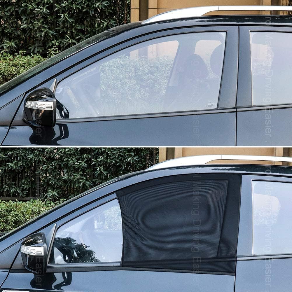 ► 【FREELY RAISE & ROLL DOWN WINDOWS AND PRIVACY ROOM】: The car window sun shade mesh is install on the exterior of the door frame, you can freely raise and roll down the windows. It will create a privacy and safety room for the back seat passengers with this breathable and elastic mesh fabric.