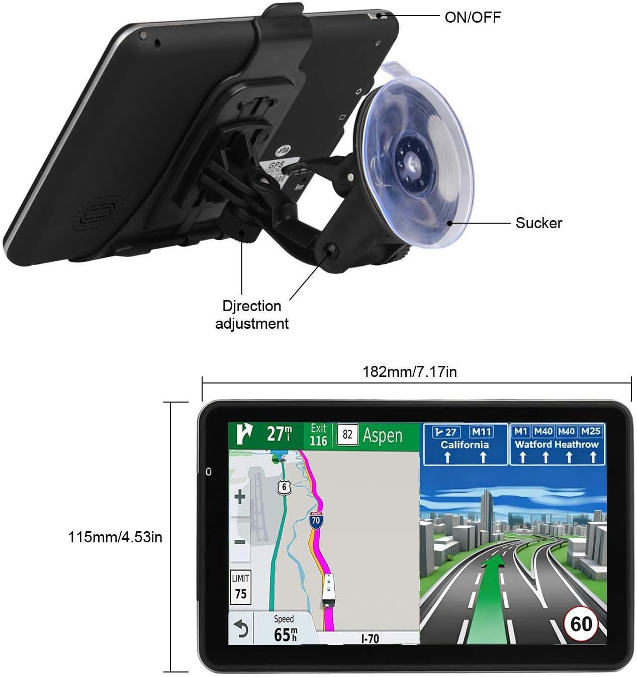 【7 inch Vehicle GPS Navigation for Car】7 inch HD touch screen provides a clear view of the map.The screen is sensitive and responsive.The map can be clearly seen even under strong sunlight.The screen displays the distance from the starting point to the destination and the estimated time to reach the destination.