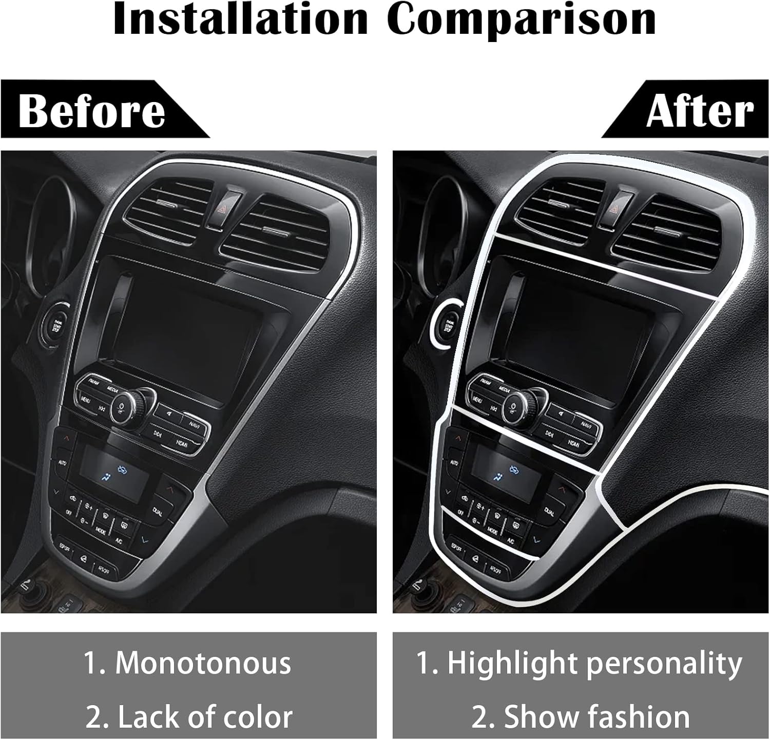 High Quality Material: car interior trim are made of high quality soft PVC material and electroplated metal, which is wear-resistant and corrosion-resistant, durable, not easy to break, not easy to fade, tasteless, and can be used for a long time.
