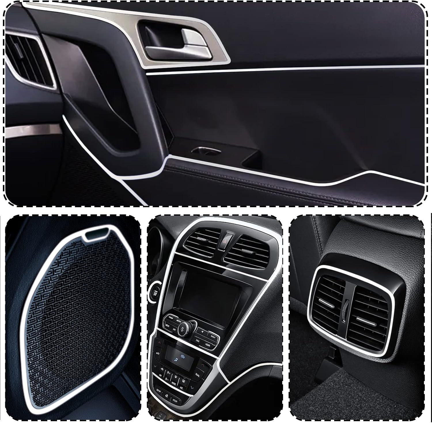 Interior Strip Size: The length of the trim strip is 10 meters, about 33feet, which is enough to use in your car interior, dashboard, door, steering wheel, center console, etc. Also easy to trim to the right length you need.