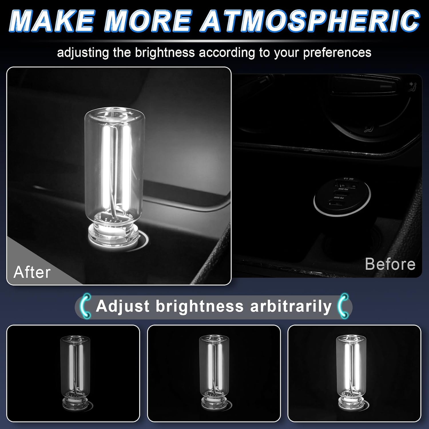 What Get: Each package contains 2 White USB light, with different light colors and brightness to create an atmosphere that matches your mood. Note: These USB car lights are only monochrome and do not have color conversion function, but you can choose different monochrome lights for combination.