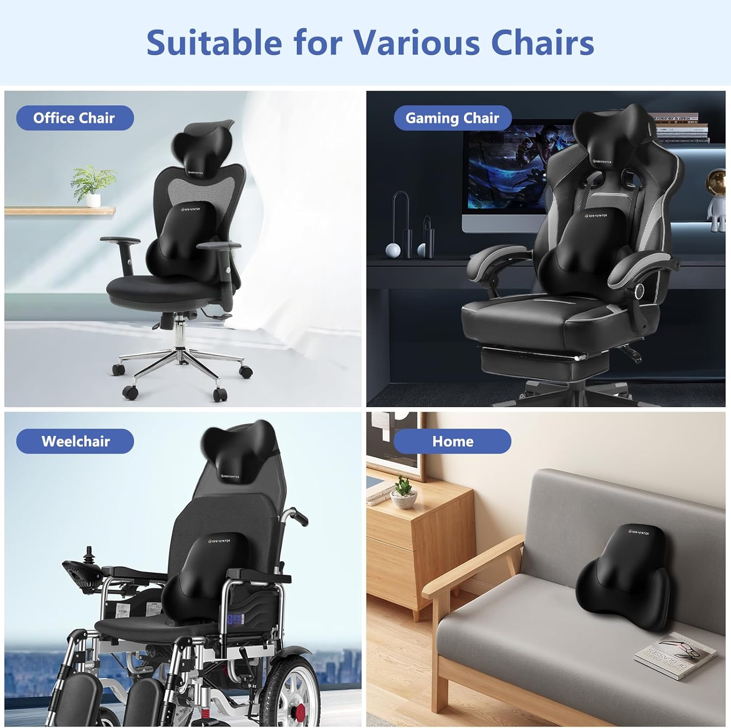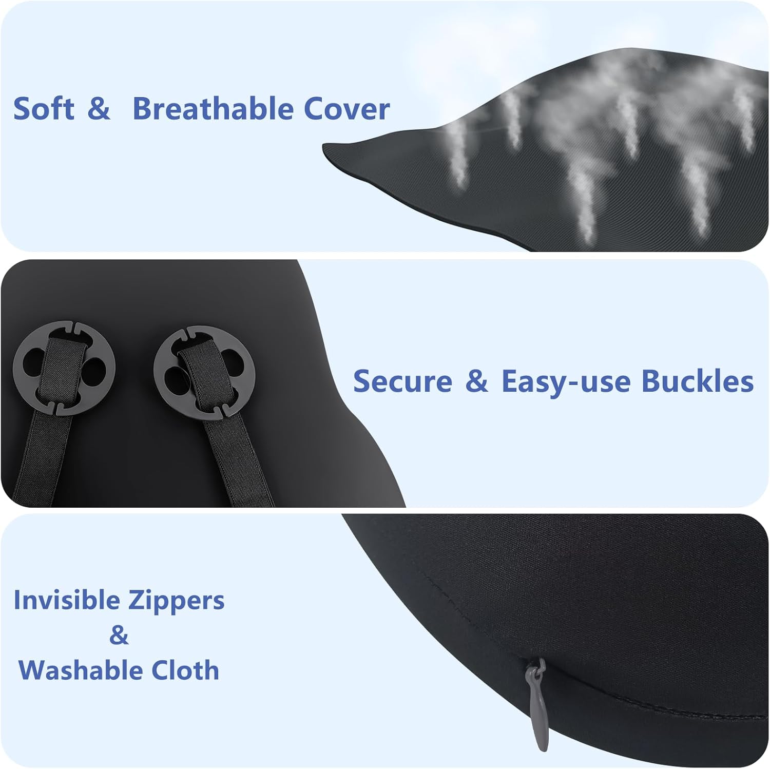 QUALITY MATERIALS: The pillow cover is made of skin-friendly, breathable, soft and comfortable fabric, suitable for all seasons, removable and washable. The bottom of the lumbar pillow is equipped with buckles, which can firmly fix the lumbar pillow on the seat and will not slide, keeping the lumbar pillow stable. The neck pillow has an adjustable elastic band.