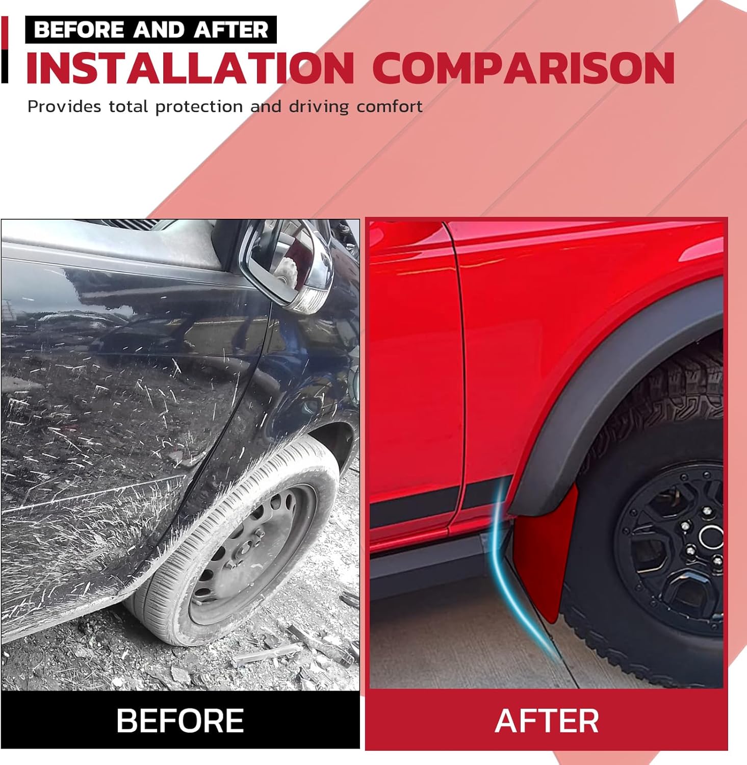 【Easy to Intall】These mud guards can be installed in a short time without professional installers,just a few screws and a few minutes to install, no punch design, non-destructive installation, fenders designed according to the original car, no harm to the original car, and a perfect match for your vehicle every time. Avoids unnecessary and laborious drilling.