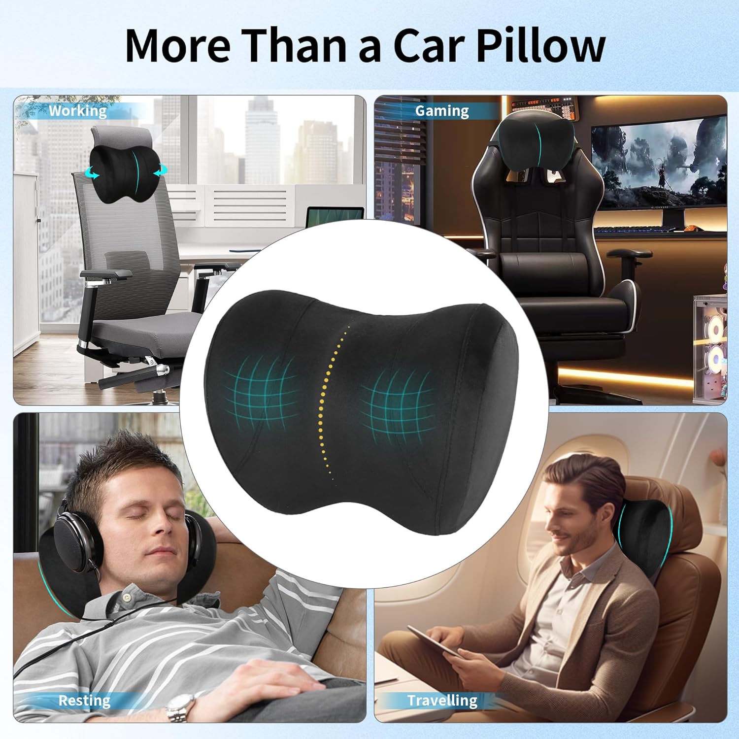 【Ergonomic Design】The neck pillow for car is ergonomically designed. The curve above the car neck pillow for driving precisely conforms to the curve of the head, providing more effective support for the head. The curve in the middle of the car seat neck pillow precisely fits the curve of the neck, support the neck and relieve neck pain. The curve below the neck pillow car precisely matches the shoulders on both sides, providing better support for the shoulders to relieve the tension in the trapezius muscles. The entire curve of the car pillow is designed in a W-shape. When you lean on it, the sides of the headrest will contract inward, allowing it to more fully wrap around your neck.