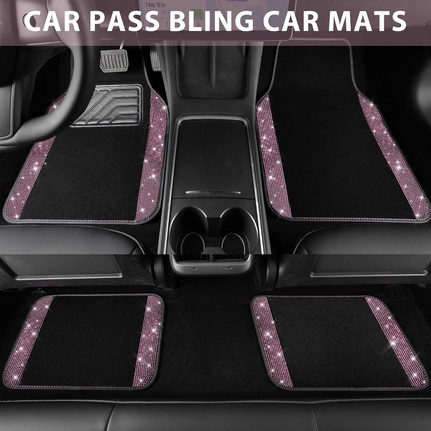 BLING DIAMOND FLOOR MAT – Premium carpet with pretty rhinestones made. Refresh and protect your car in just seconds. Shield your car upholstery from stains, spills and everyday wear & tear with these waterproof floor mat