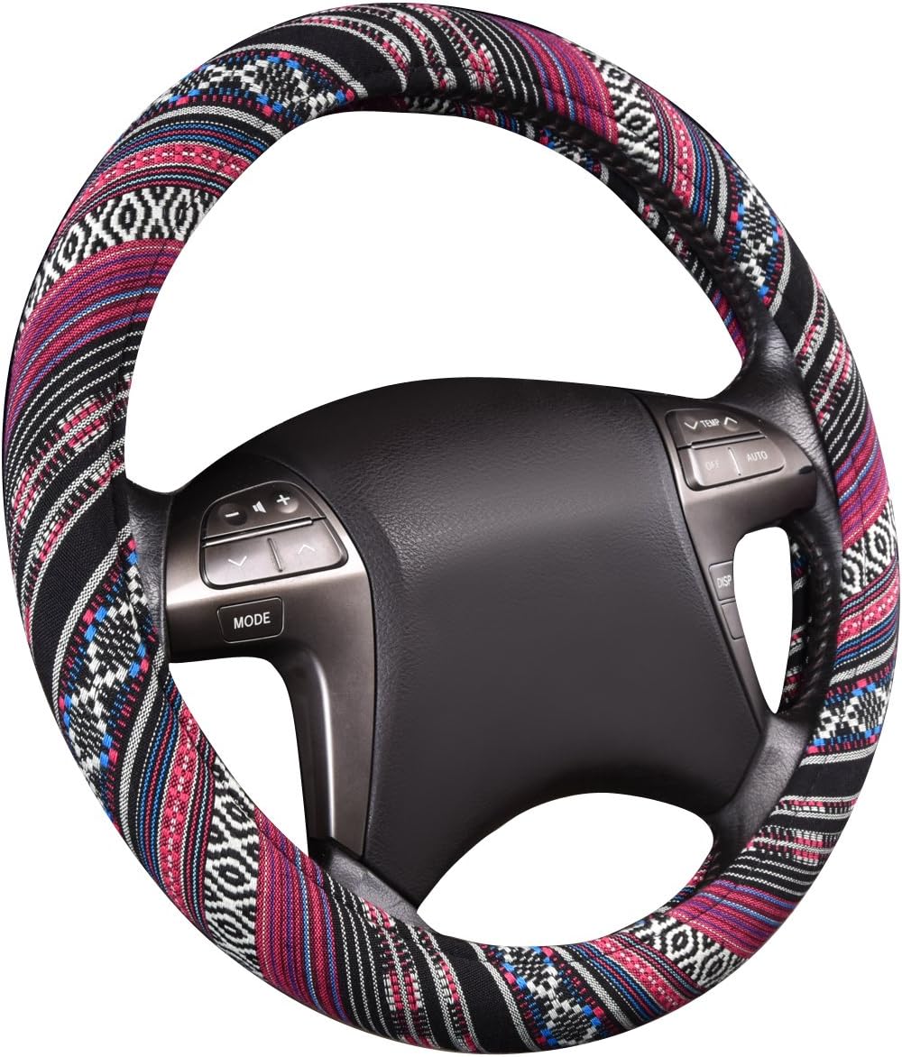 【ANTI-SLIP VEINS DESIGN】Ethnic Flax Cloth Steering Wheel Cover is easy to install. Make sure the steering wheel covers don’t move during use. Keep your safety at all times. Won’t slip when you drive and use.