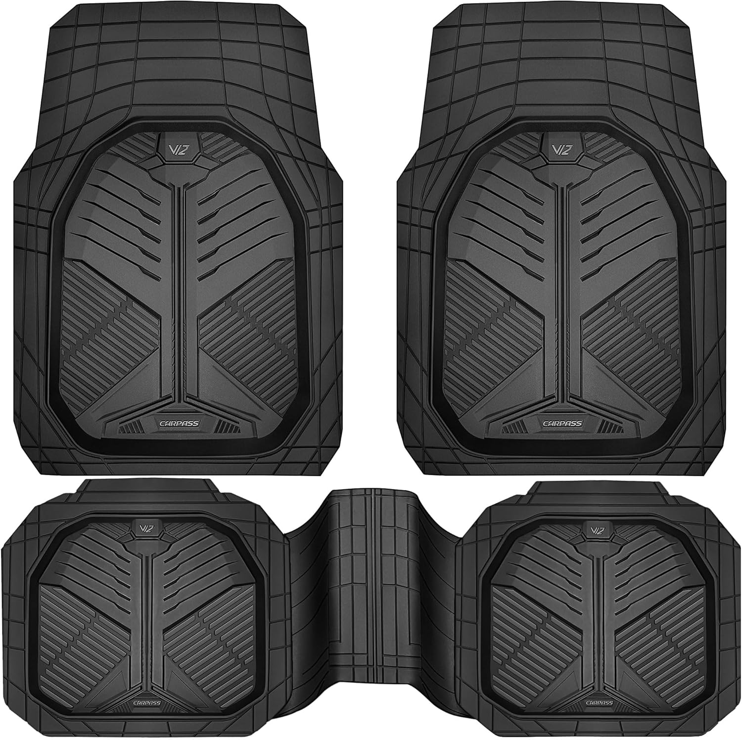 All Weather Protection: The CAR PASS Heavy-duty Deep-Dish rubber car floor mats use for all season Odorless durability Protect your car floors from dirt and debris wear resistant. Easy to clean. DeepDish design of the car mats can holds water, snow, mud, and road salt All Weather-Proof.