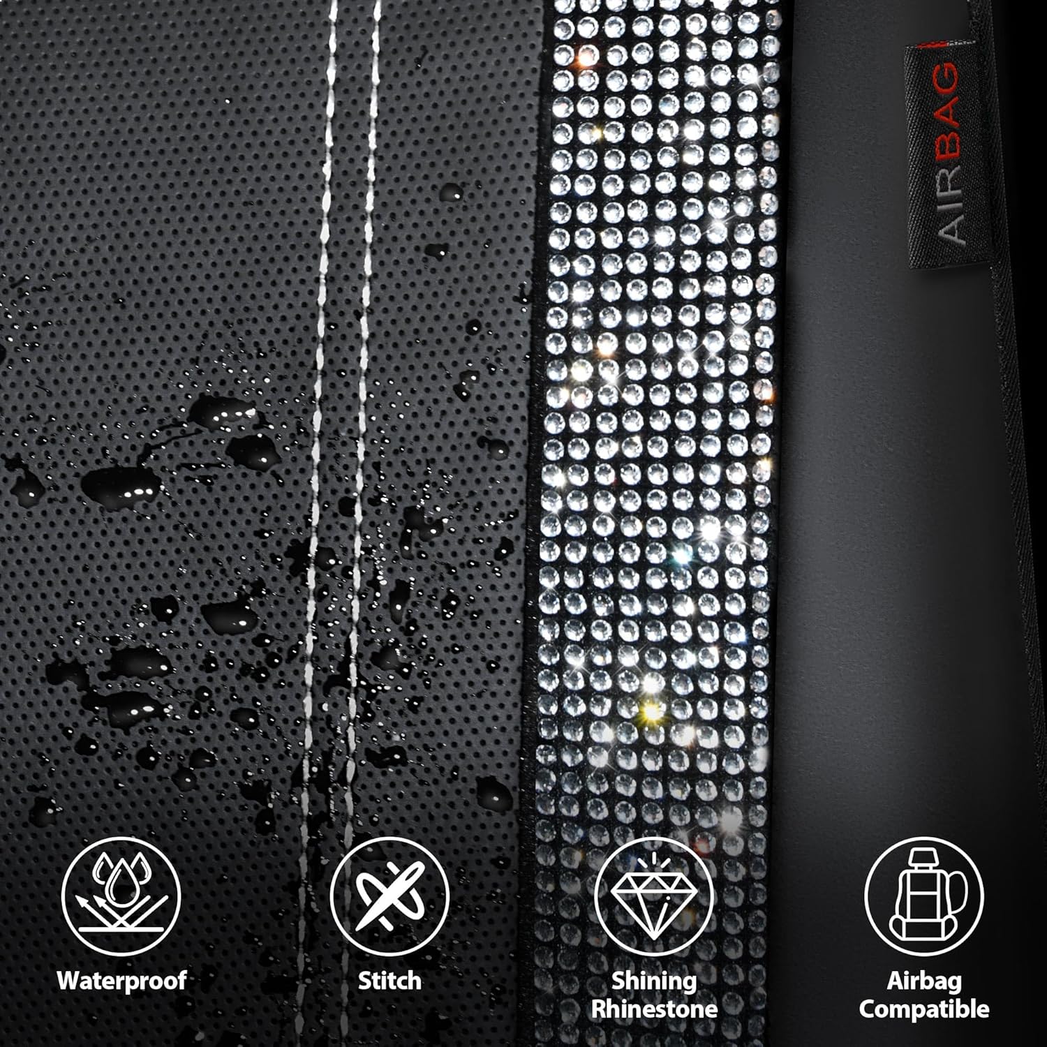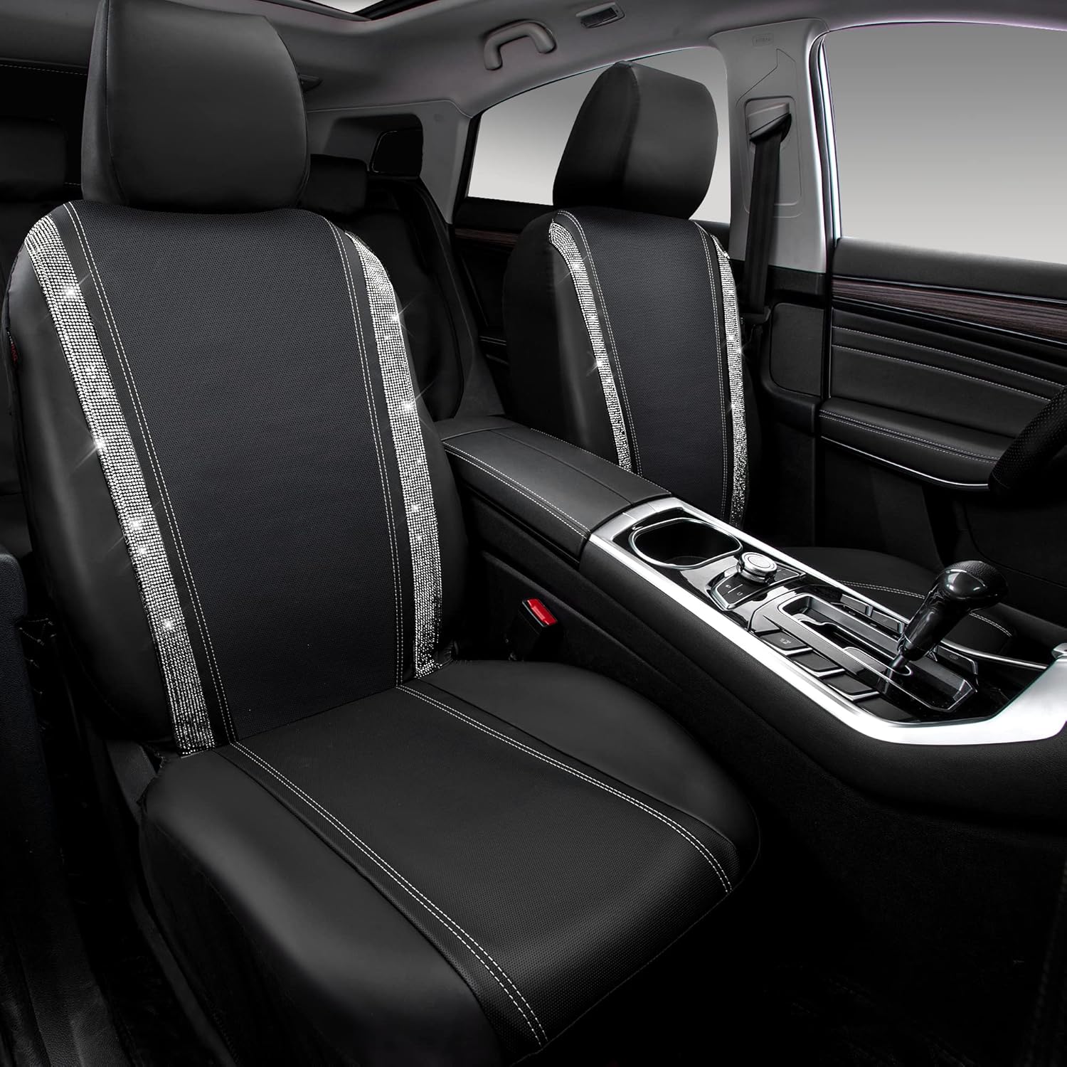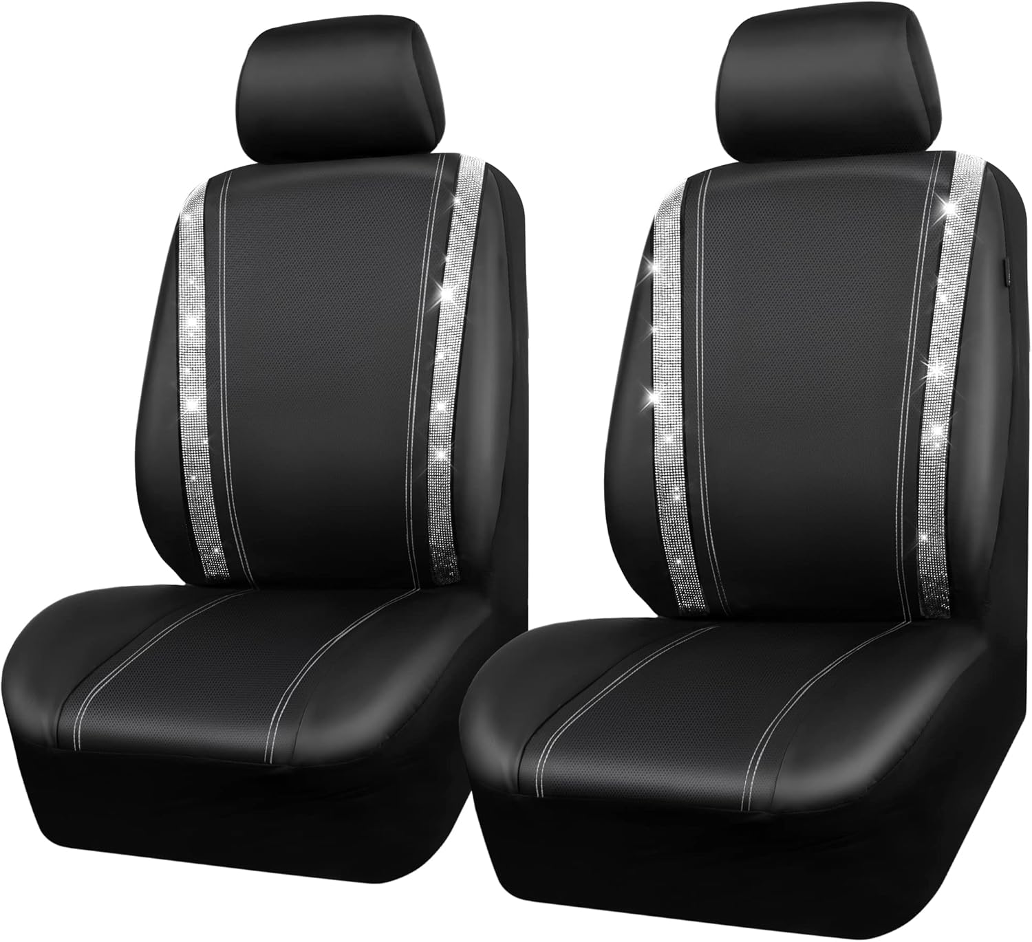 BLING DIAMOND CAR SEAT COVER: Premium Leather with pretty white rhinestones Made. luxury Black leather with shiny rhinestones, perfect for women, girls. Perfectly match your interior look. Ensure your seat covers will last for many years to come. Refresh your interior look. Beautiful design with good quality.