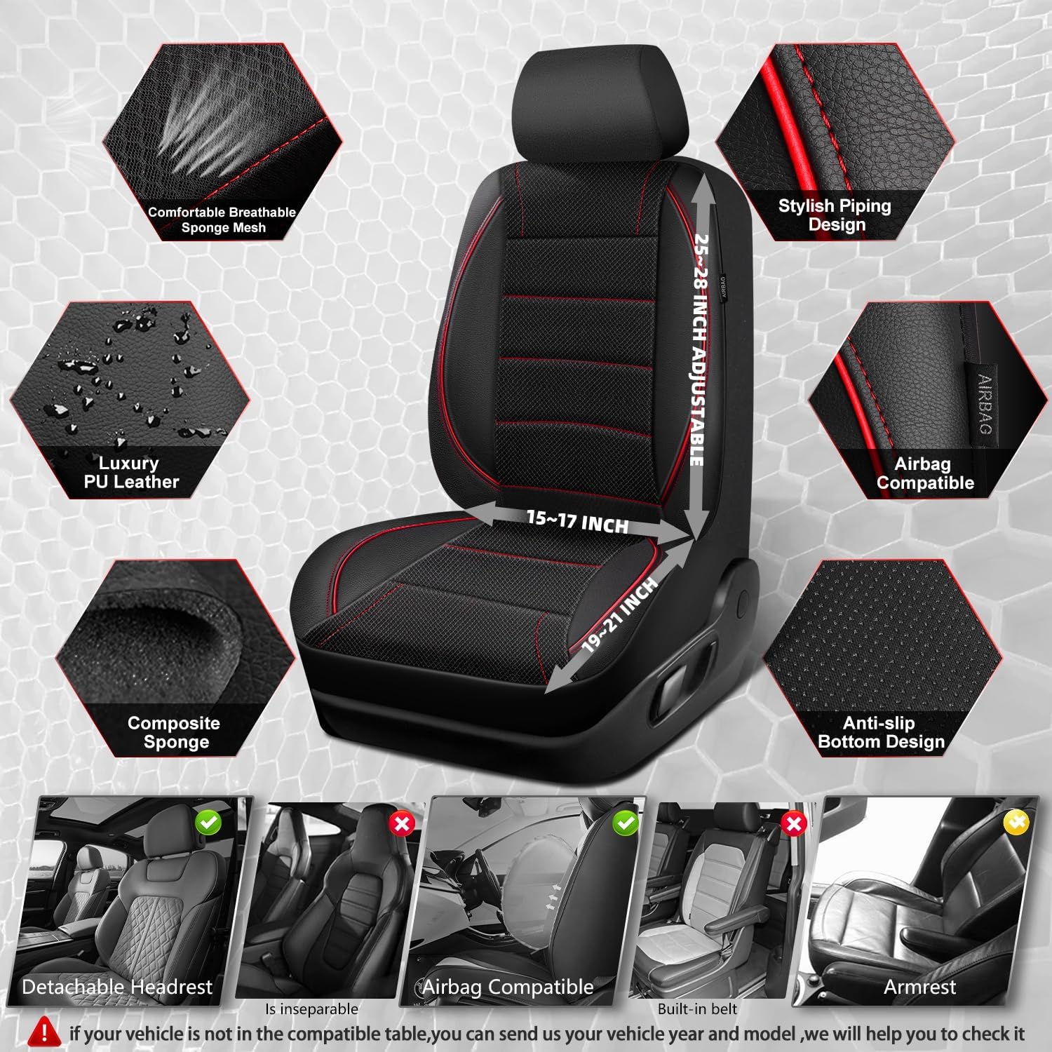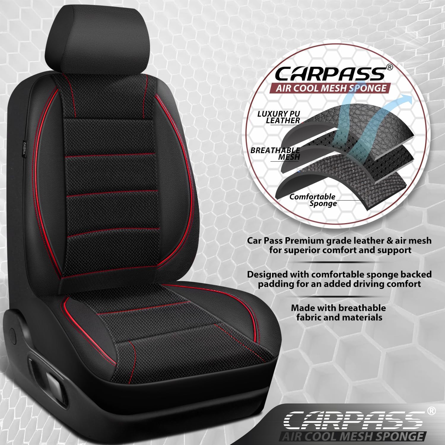 13 reviews for CAR PASS Mesh Leather Car Seat Covers Full Set,Breathable Mesh Faux Leather Seat Covers for Car, Universal Fit for SUV Truck Sedan Automotive, Airbag Compatible, Black and Red