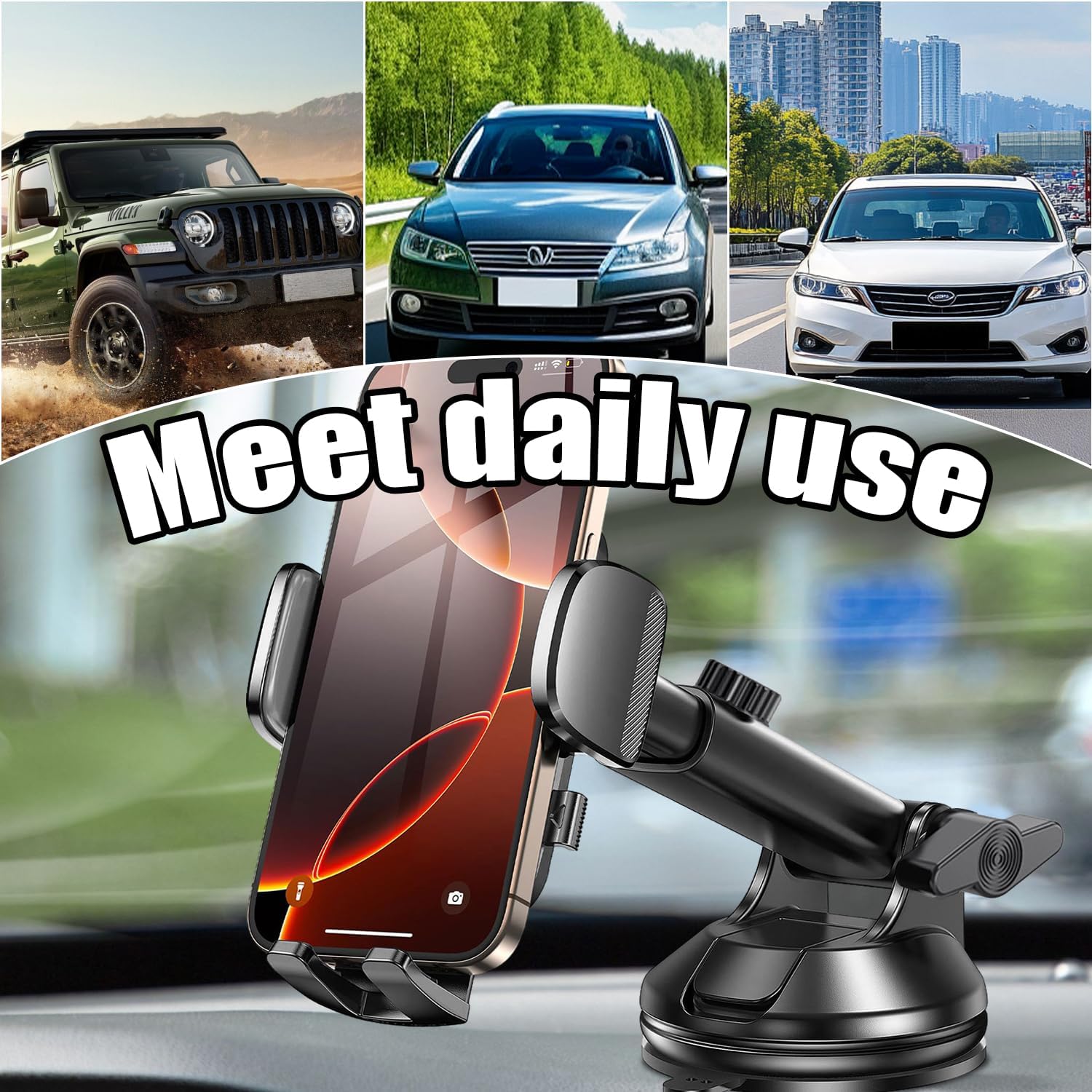 Car Phone Holder with Suction Cup Base Adjustable Dashboard Windshield Mount Smartphone GPS Use Stable Hands Free Driving
