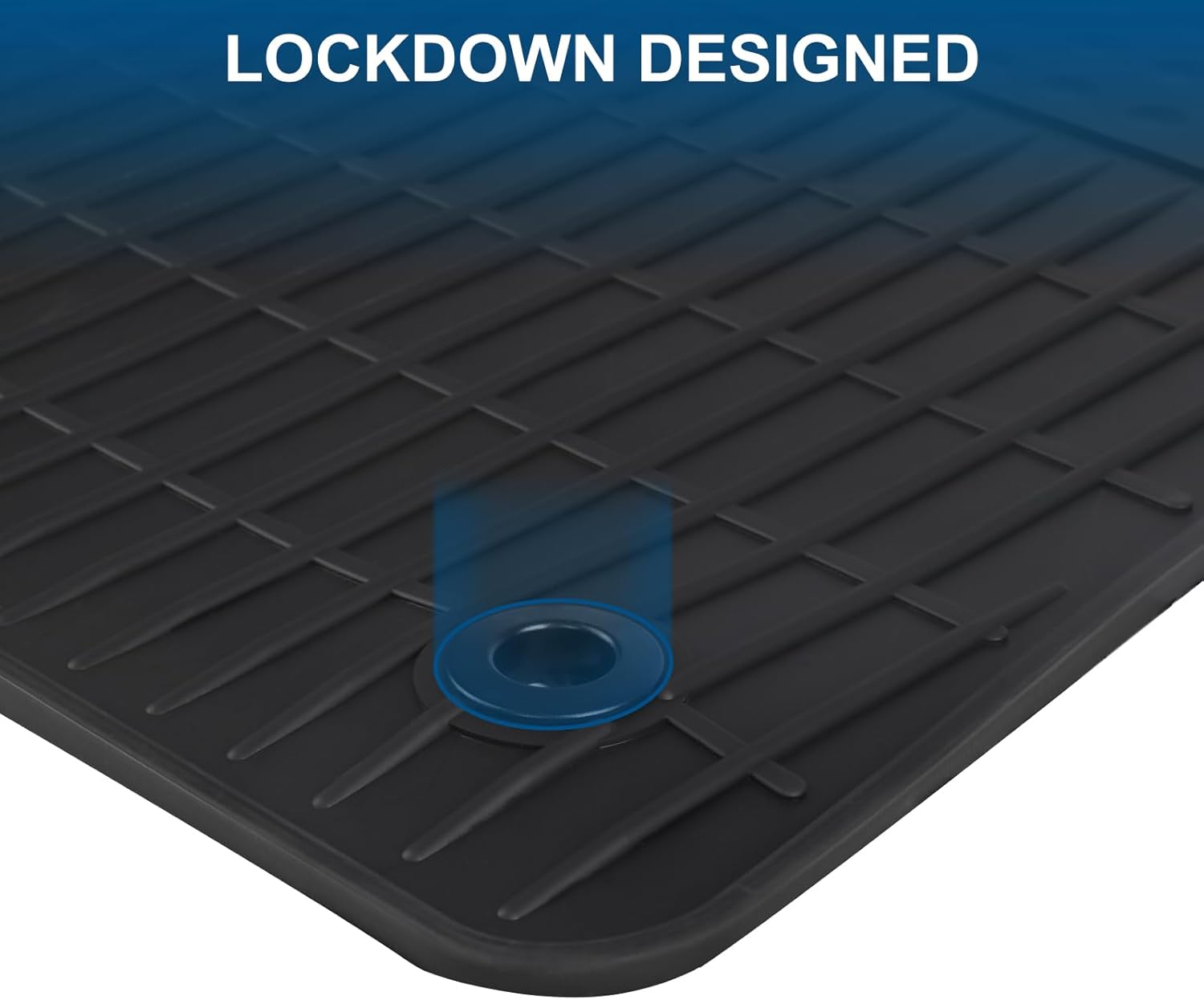 As you can see in the pictures, the mats fit pretty well in my 2025 Corolla. I like that the driver’s mat has the holes for the locks so that it stays in place. The back of the mats are smooth, but it doesn’t move much since it covers the whole space of the floor. I was originally going to get some universal mats (20 to 30 dollars cheaper), but I am glad I got this set since I don’t need to trim it or worry about it moving around.