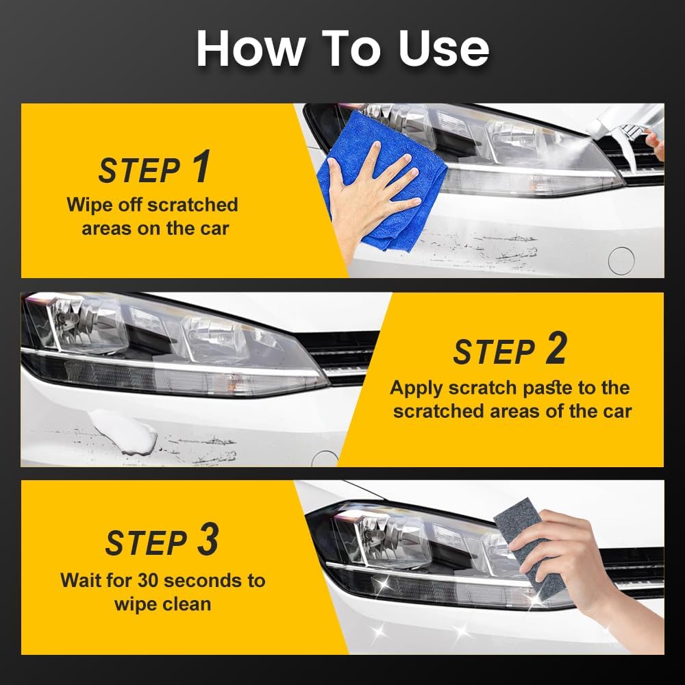 【Easy 3-Step Usage】Car scratch removal wax with sponge and cloth enables a simple process: apply product to the pad, work into the paint with circular motions, and wipe off with the cloth. Achieve professional results using this easy to use car scratch repair wax