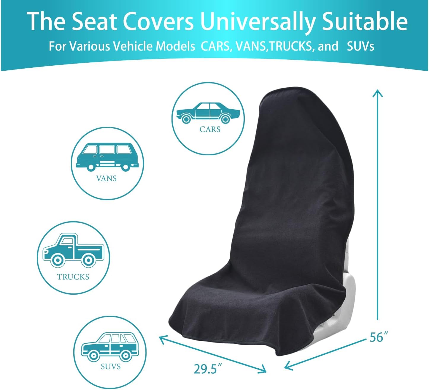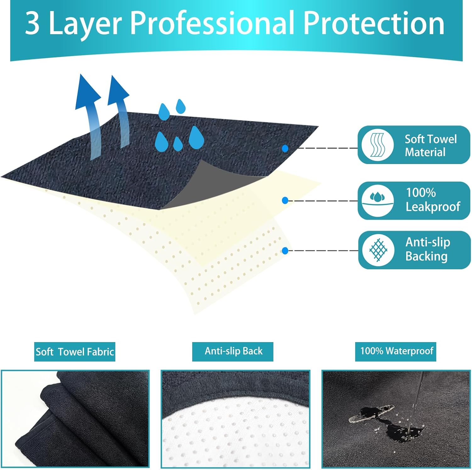 【3-Layer Material, Comfortable & Durable】- Front: Soft towel cloth material, offering a comfortable touch and quick-drying properties. Middle: High-efficiency waterproof layer to prevent liquid penetration. Back: Non-slip backing fabric ensures a secure fit, preventing the cover from sliding during drives.