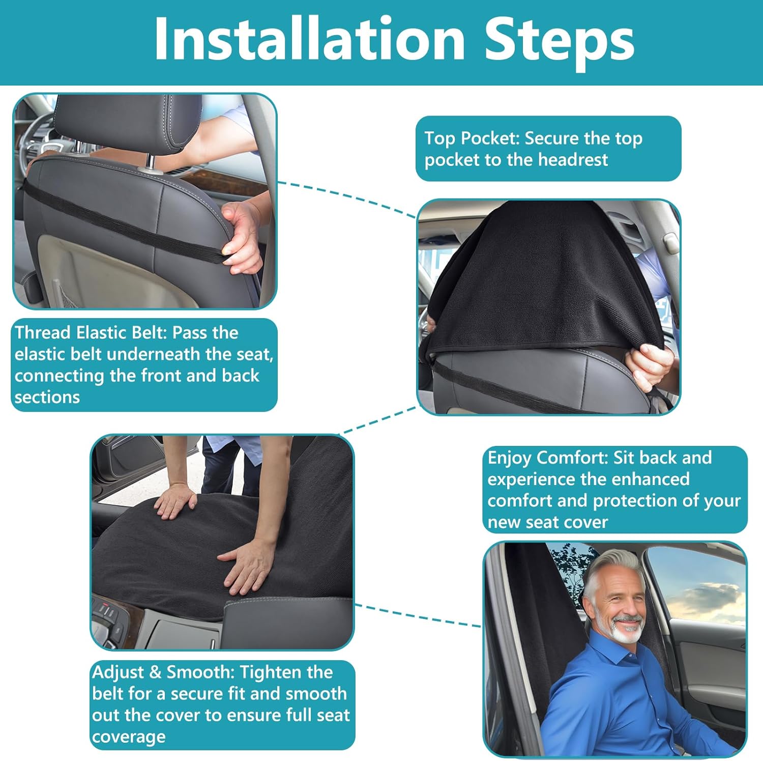 【Universal Fit, Perfect for Most Vehicles】- Designed for front seats, these seat covers are compatible with most vehicles, including trucks, SUVs, and Jeeps. The adjustable elastic straps make installation quick and easy, ensuring a snug and secure fit for complete protection.
