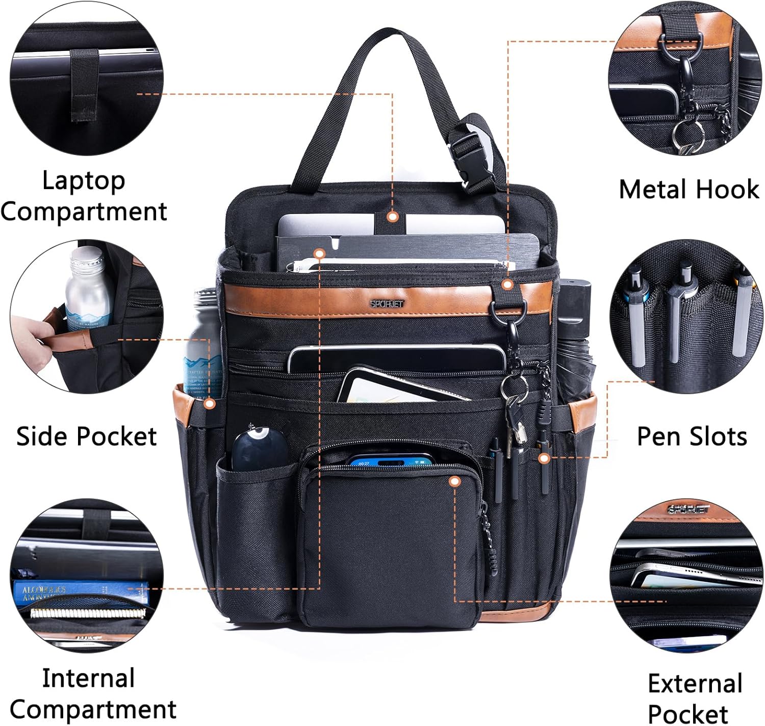 ✔ Multiple Pockets for Essentials – Includes 2 bottle holders, 2 cushioned compartments, 3 zipper/open front pockets, pen slots, phone pouch, and quick-access stationary pockets for maximum organization of work and travel gear.