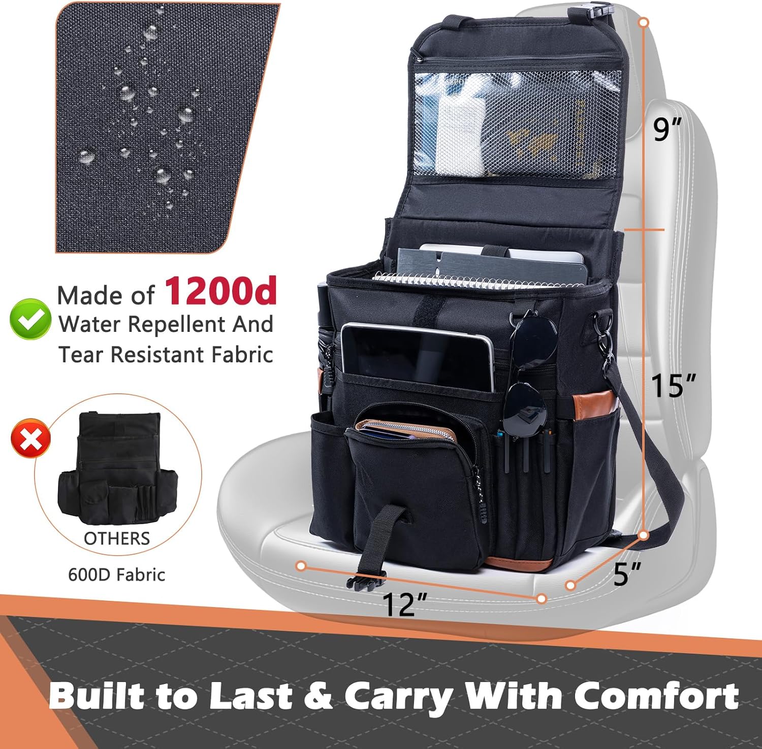 Crafted from heavy-duty 1200D polyester, this organizer is water-resistant and tear-resistant. Reinforced stitching and sturdy straps ensure years of reliable use on daily commutes, business trips, and family road trips.