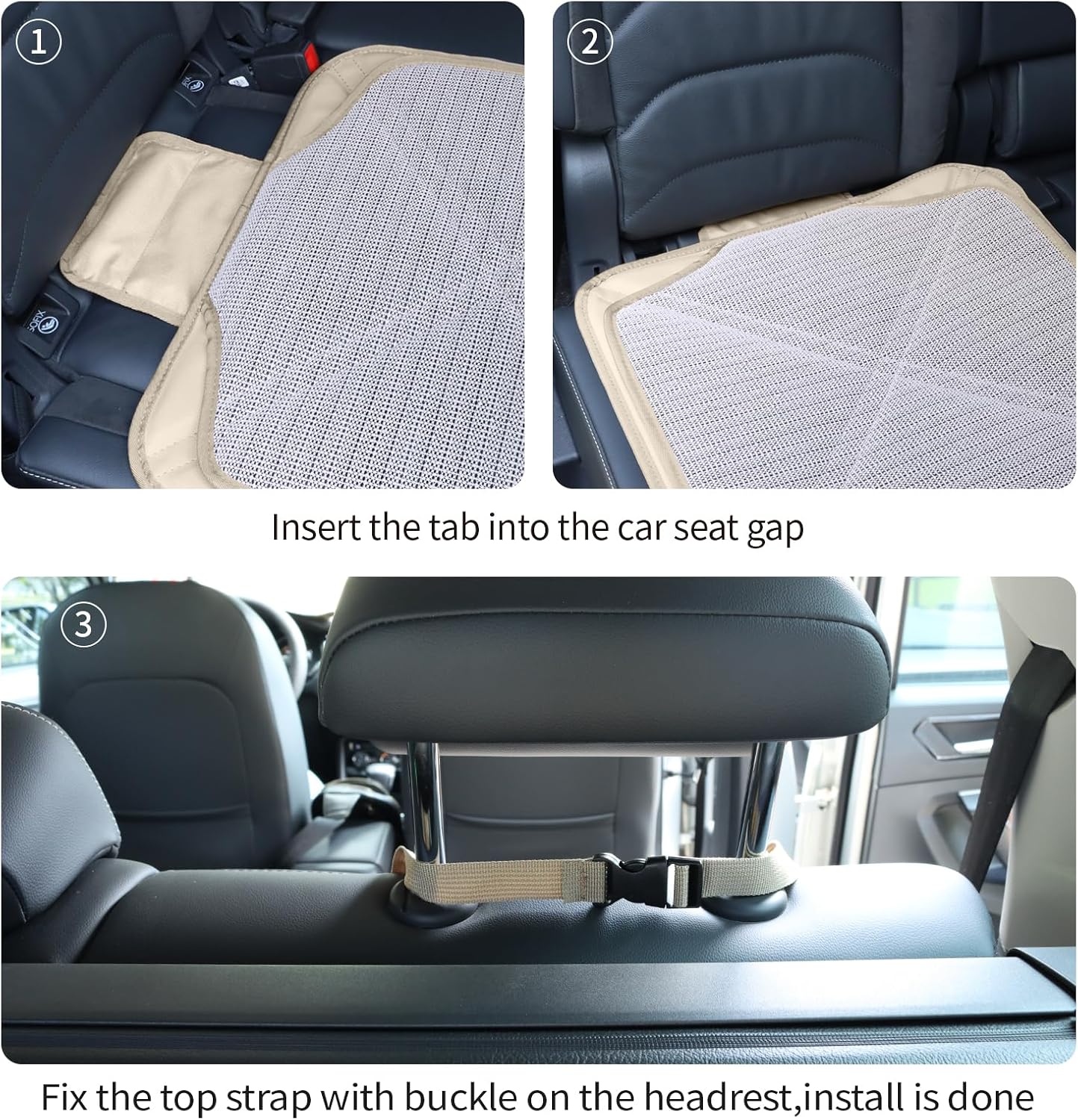 EASY INSTALLATION: with the 2 fixing designs on the top and in the middle of pad, the child safety seat protector can be fixed tightly, it’s more stable and safer, the car seat covers for babies can be installed on all auto seat that has a headrest
